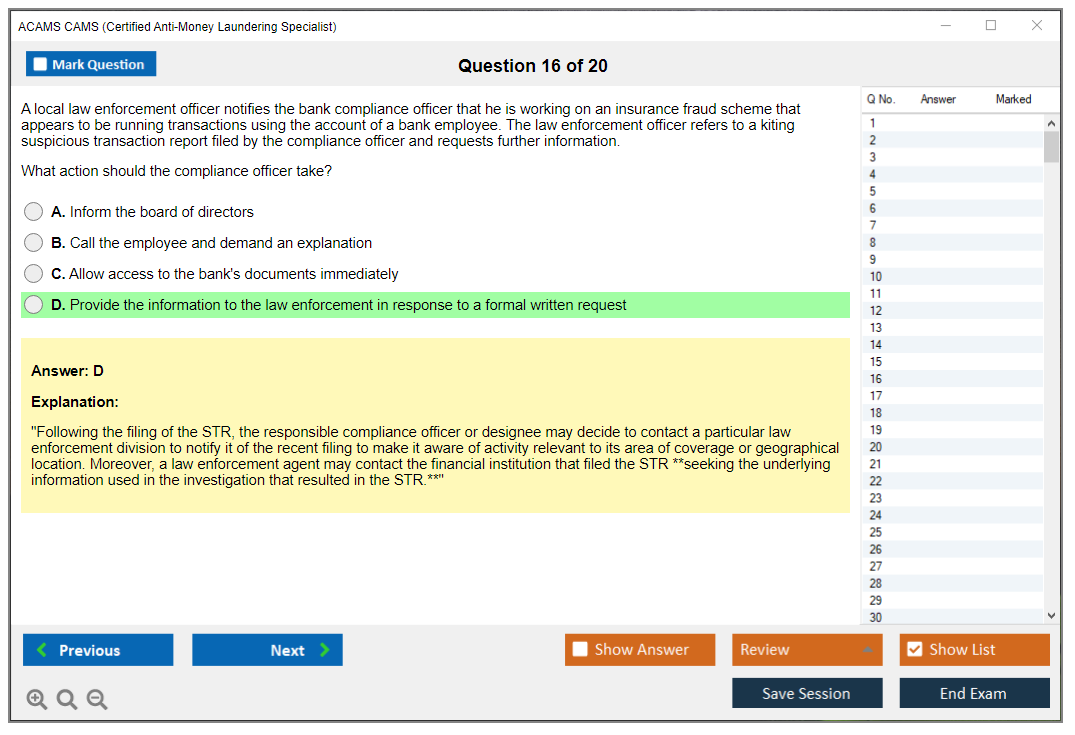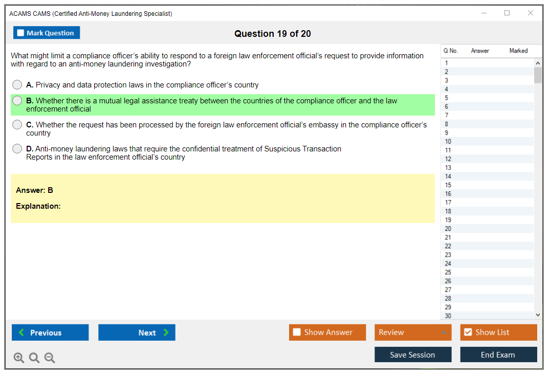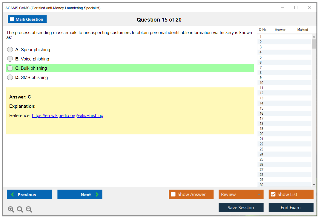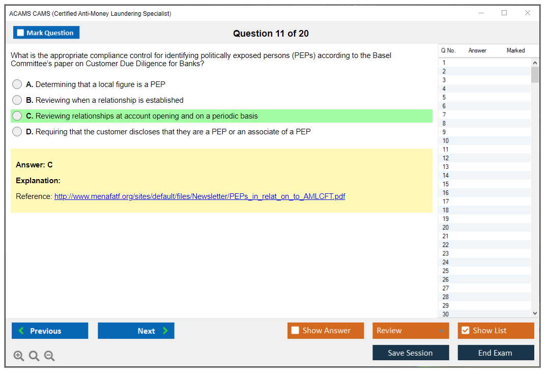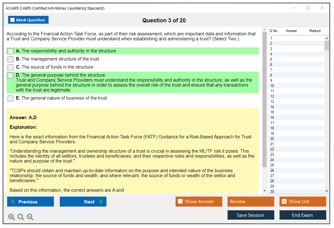 The ACAMS CAMS (Certified Anti-Money Laundering Specialist) Exam is a globally recognized certification for professionals in the anti-money laundering (AML) and financial crime prevention sectors. It validates expertise in AML detection, prevention, and enforcement.