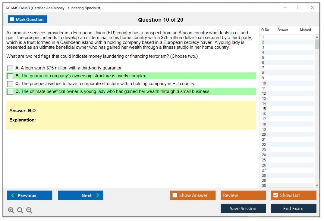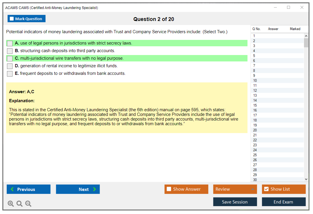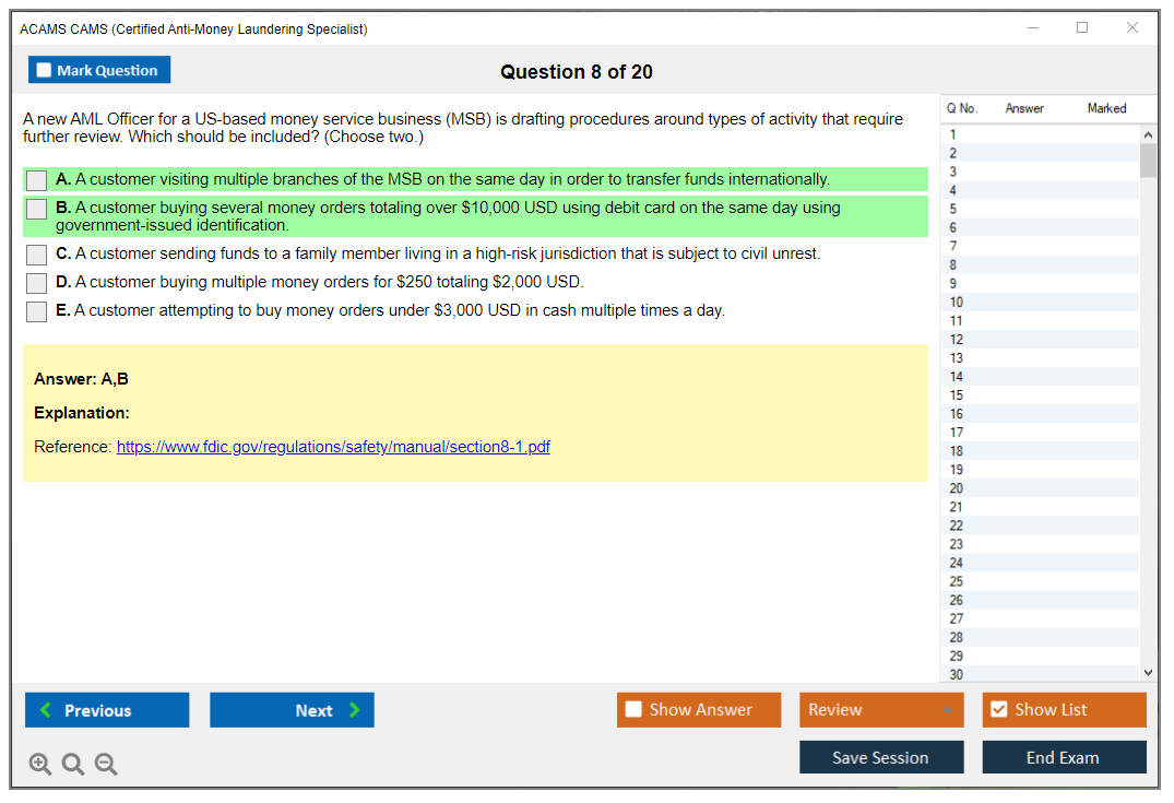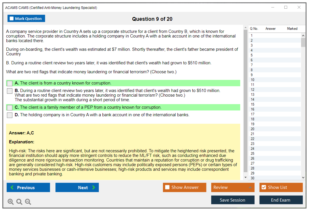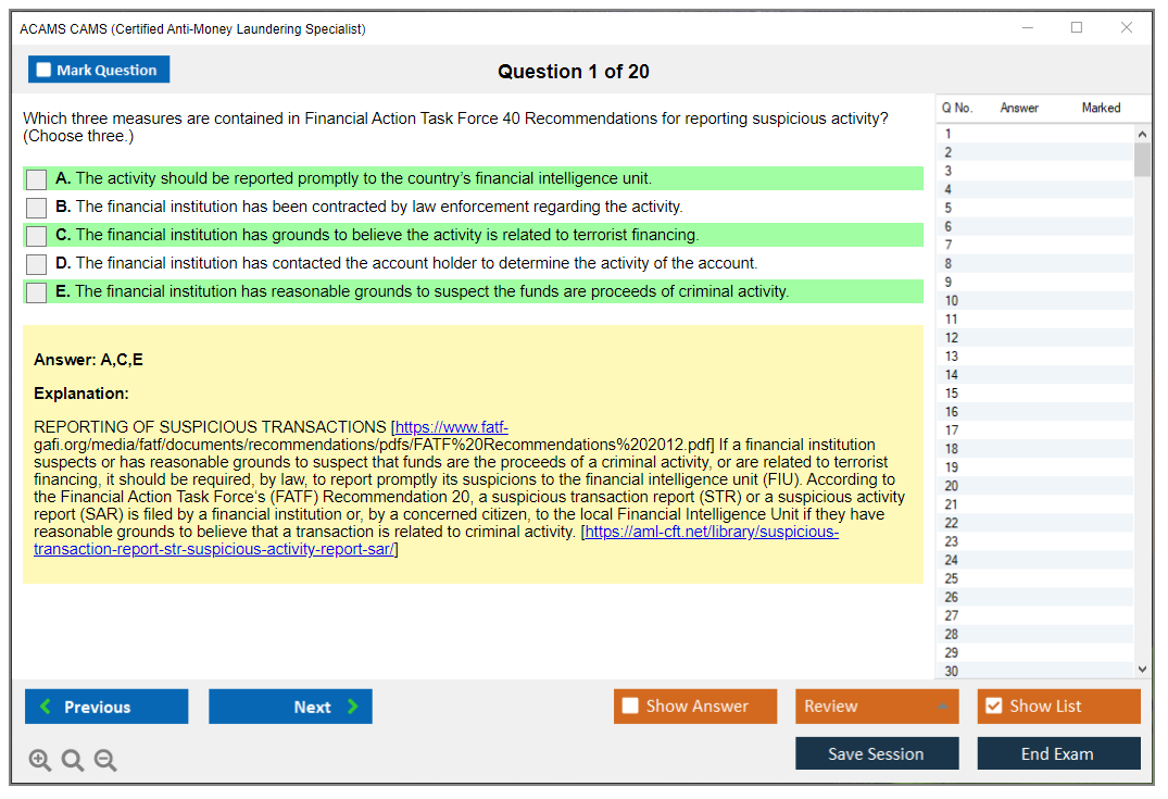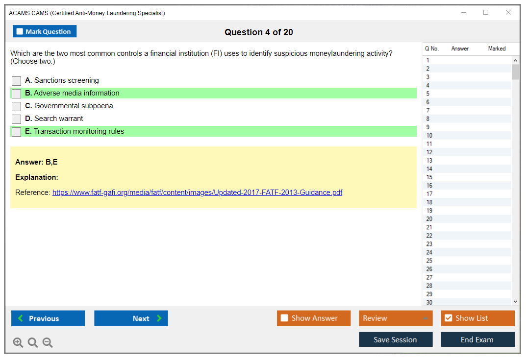 What are the Sample Questions of ACAMS CAMS Exam?