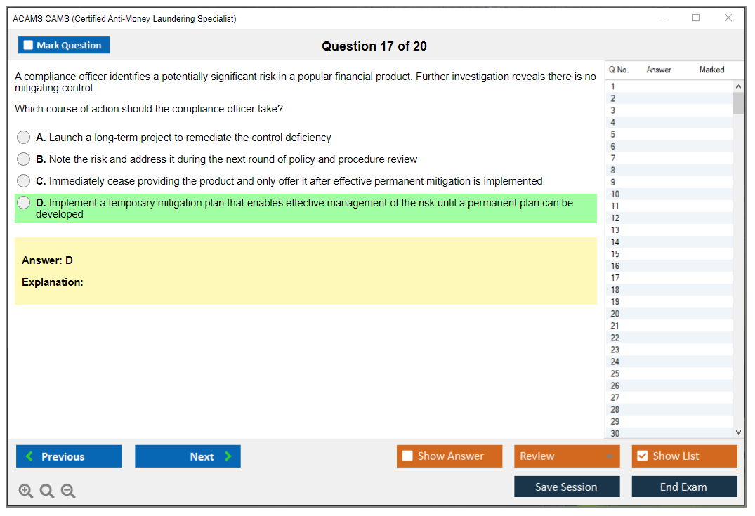 - Certification Provider: ACAMS