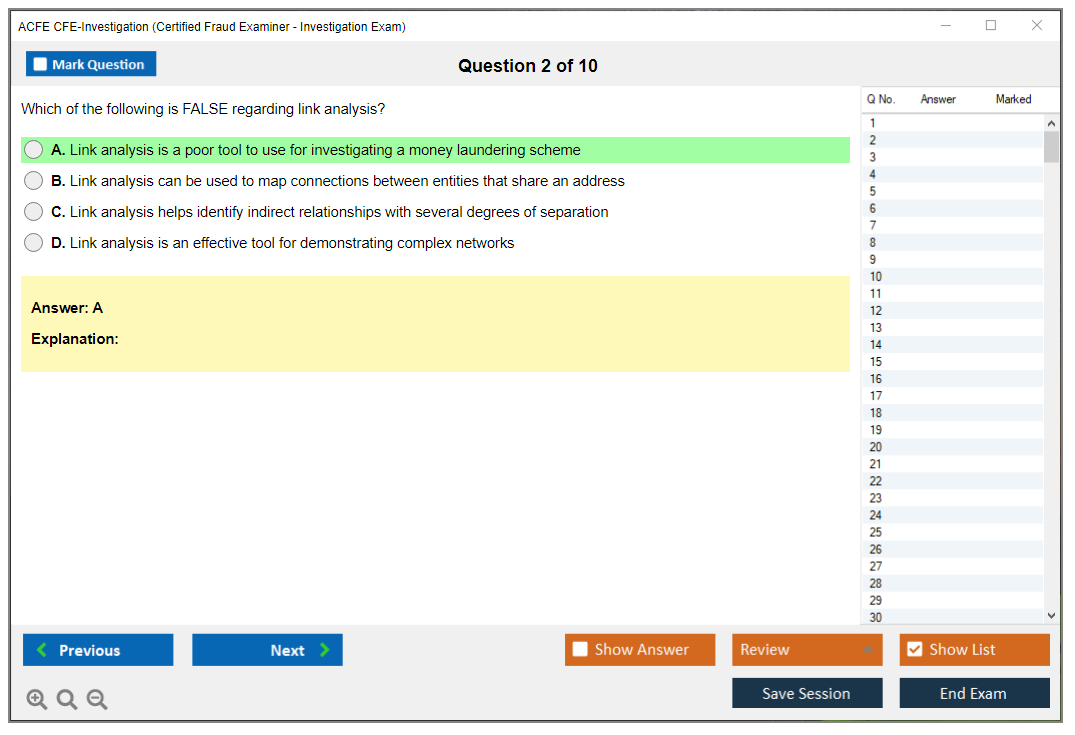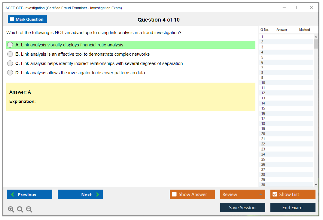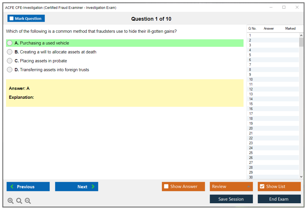 The ACFE CFE-Investigation (Certified Fraud Examiner - Investigation) Exam is a certification exam designed to assess a candidate's knowledge and skills in fraud investigation. It is one of the four sections of the CFE Exam, which also includes Financial Transactions & Fraud Schemes, Law, and Fraud Prevention & Deterrence.