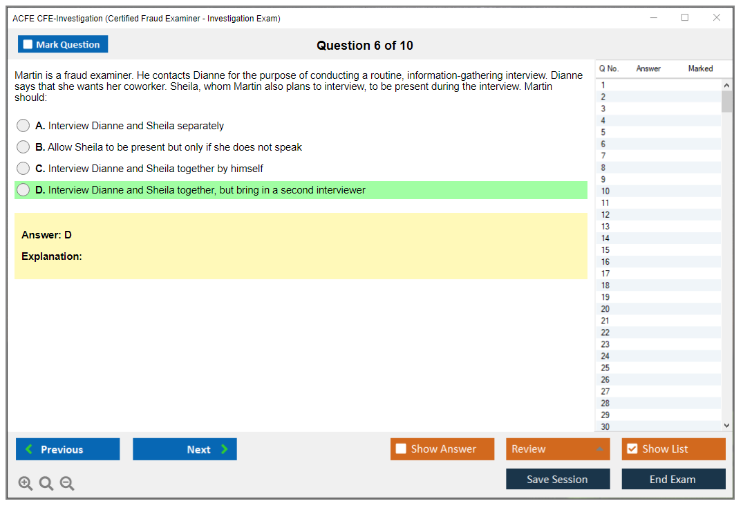 What are the Sample Questions of ACFE CFE-Investigation Exam?