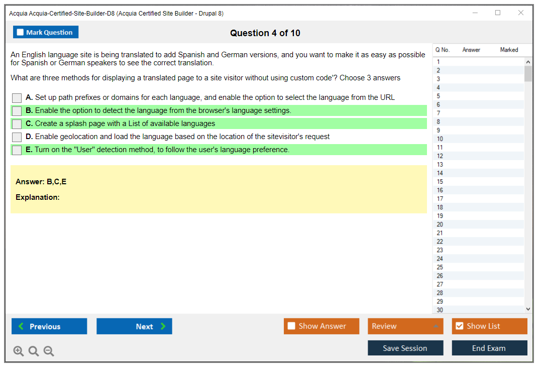 The Acquia Certified Site Builder - Drupal 8 exam is offered in English.