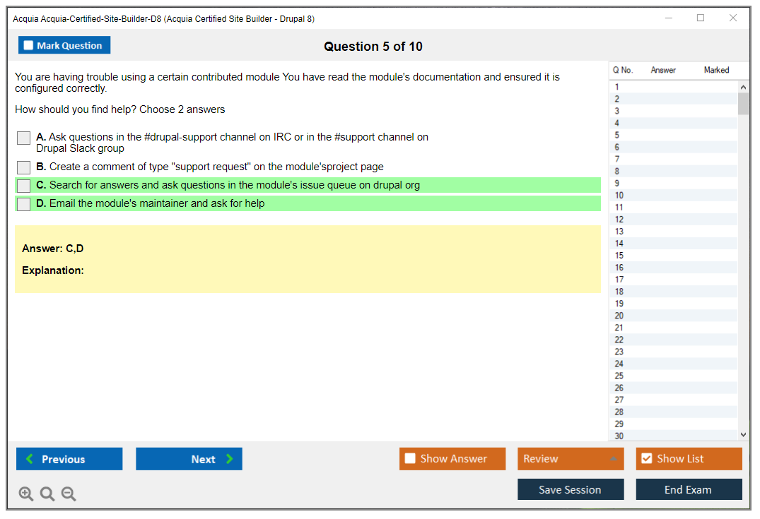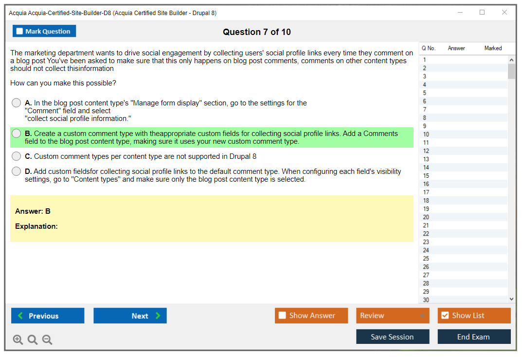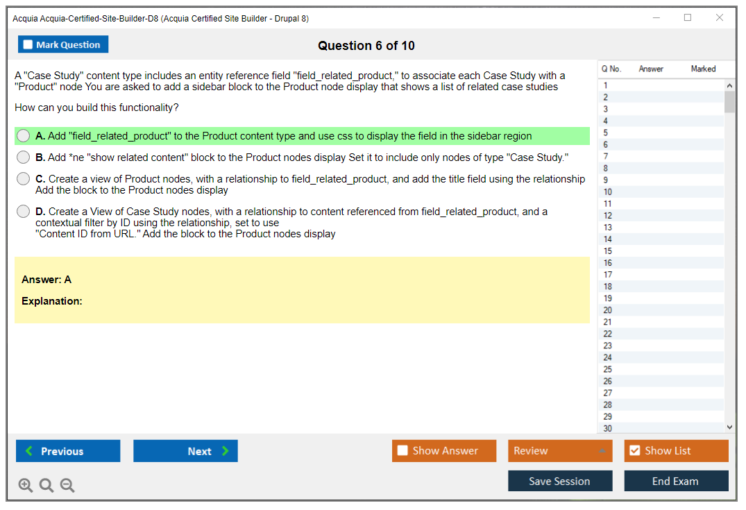 Sample questions for the Acquia Certified Site Builder - Drupal 8 exam can be found on the Acquia certification website or through Acquia’s study guides and preparation materials.