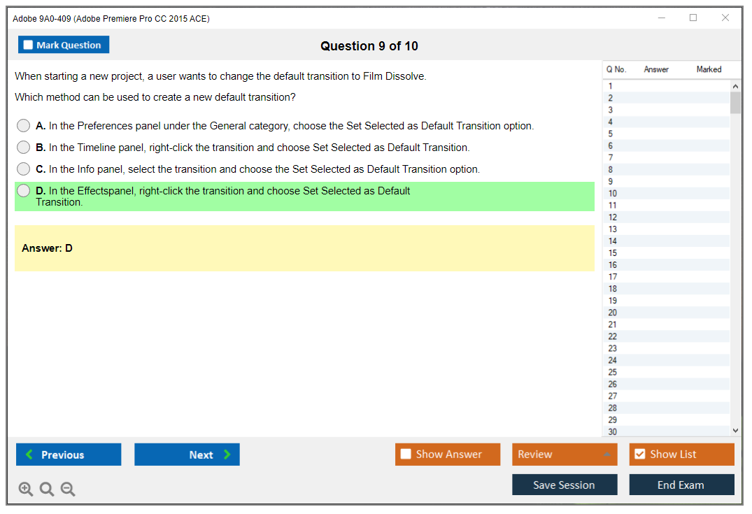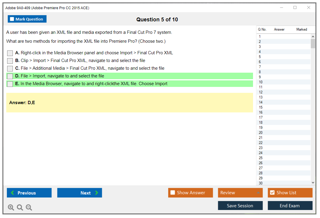 Note: Adobe 9A0-409 (Adobe Premiere Pro CC 2015 ACE) will not receive any new updates.