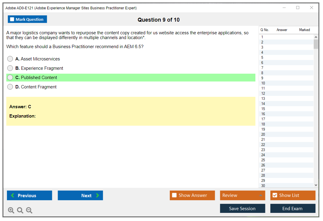 The Adobe AD0-E121 Exam is an evaluation for individuals aiming to prove their expertise in Adobe Experience Manager Sites. This certification demonstrates the candidate's proficiency in managing AEM Sites projects and their ability to translate business needs into AEM solutions.