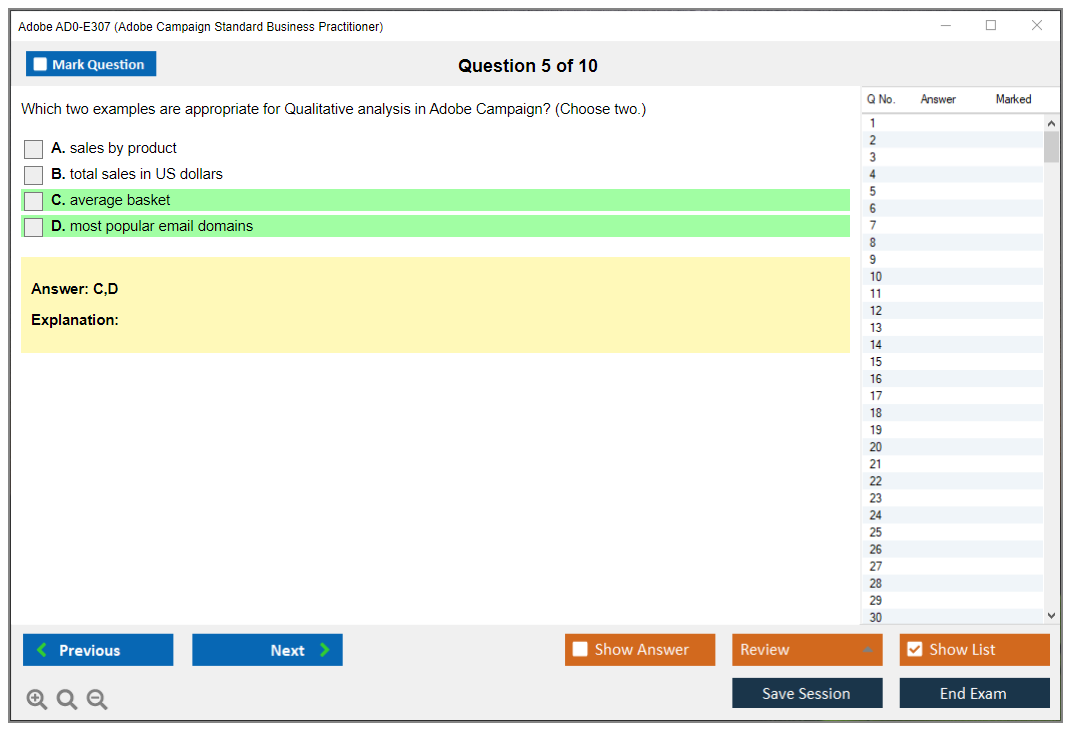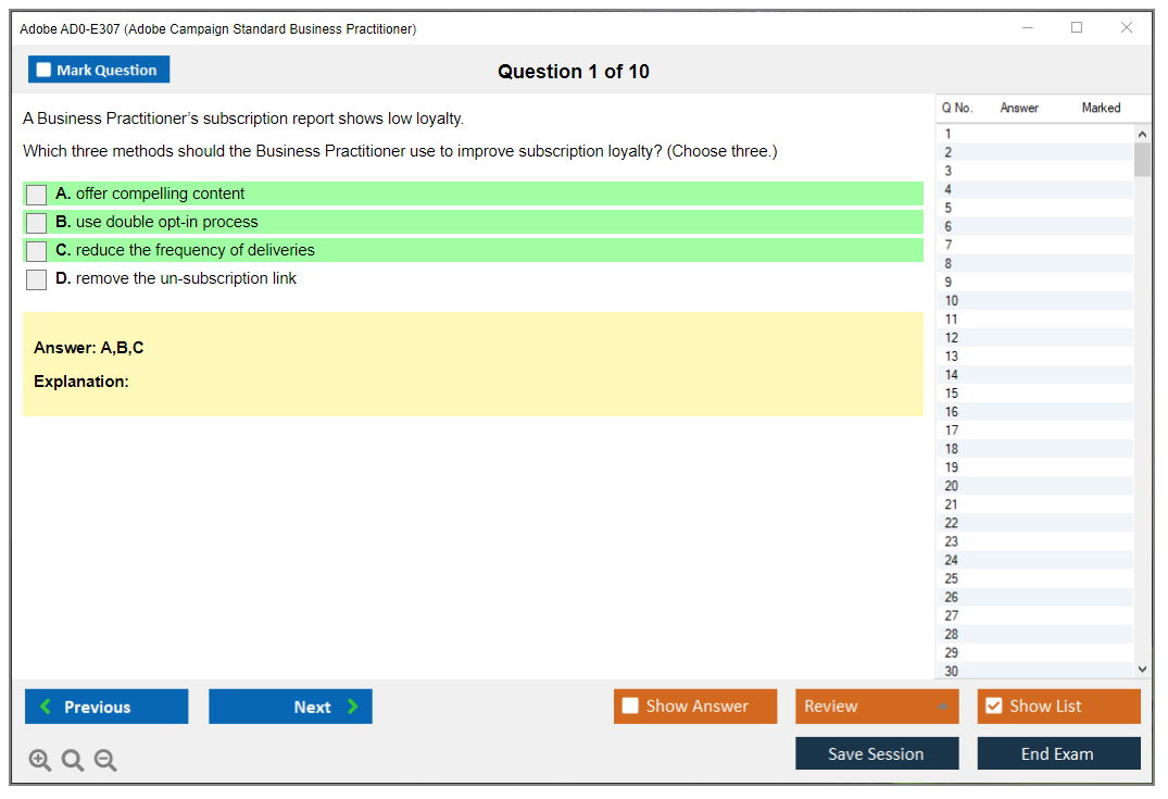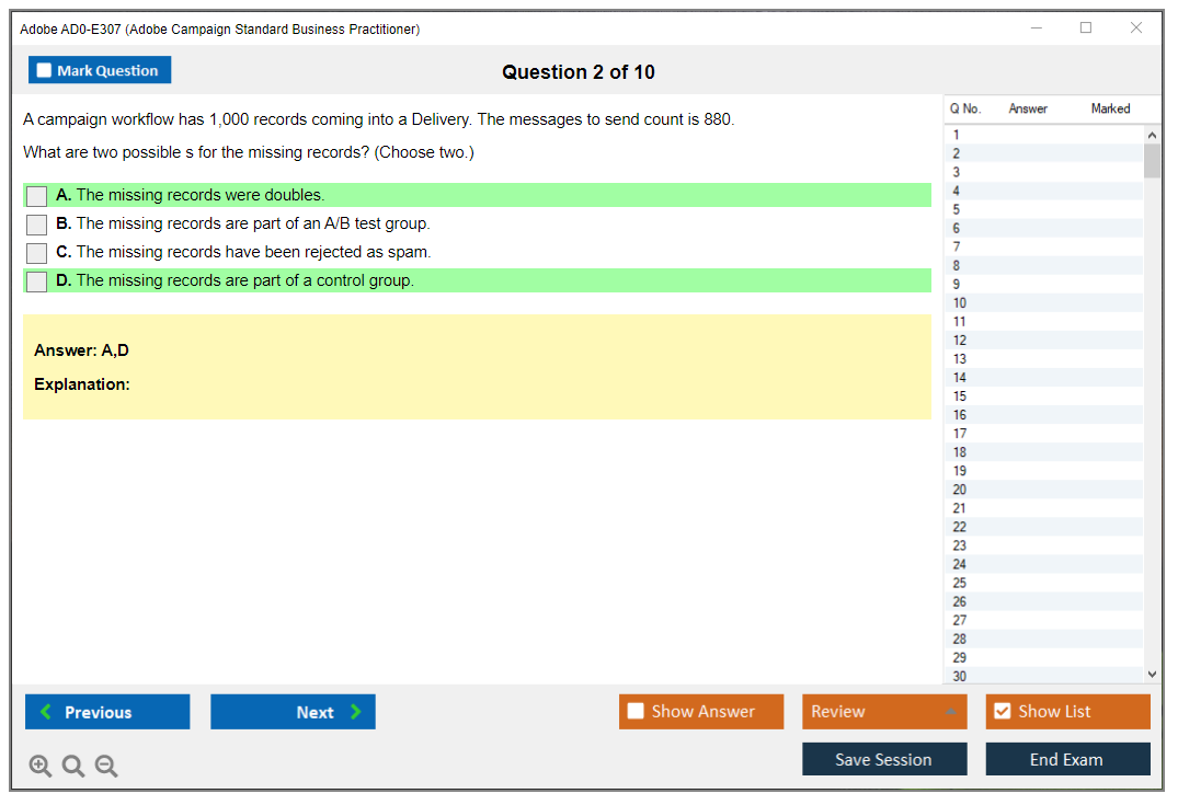 The question format of the Adobe AD0-E307 Exam includes multiple-choice and multiple-select questions.