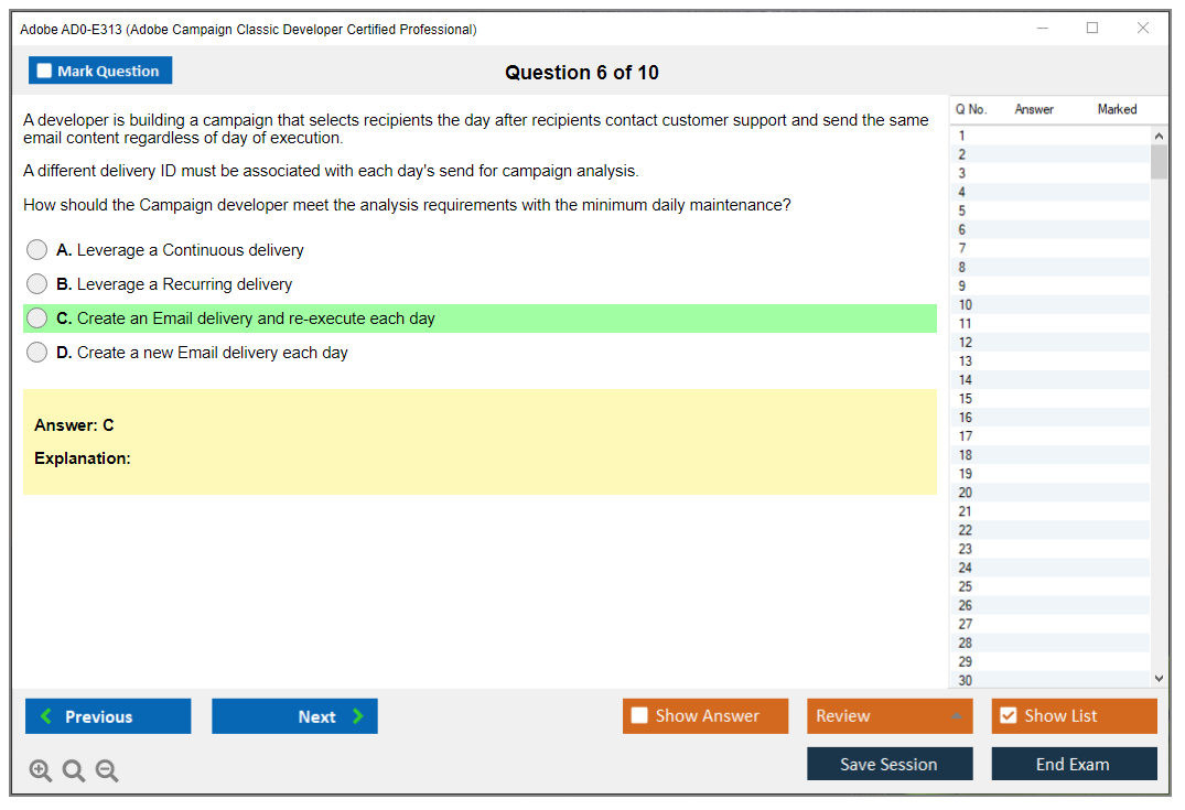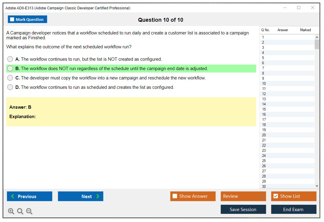 The Adobe AD0-E313 Exam is a certification test that assesses the proficiency of developers in using Adobe Campaign Classic. It covers various aspects such as campaign management, data management, workflows, and optimization techniques.