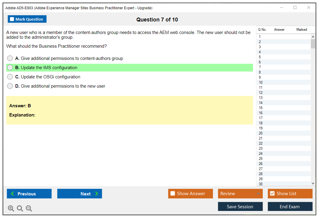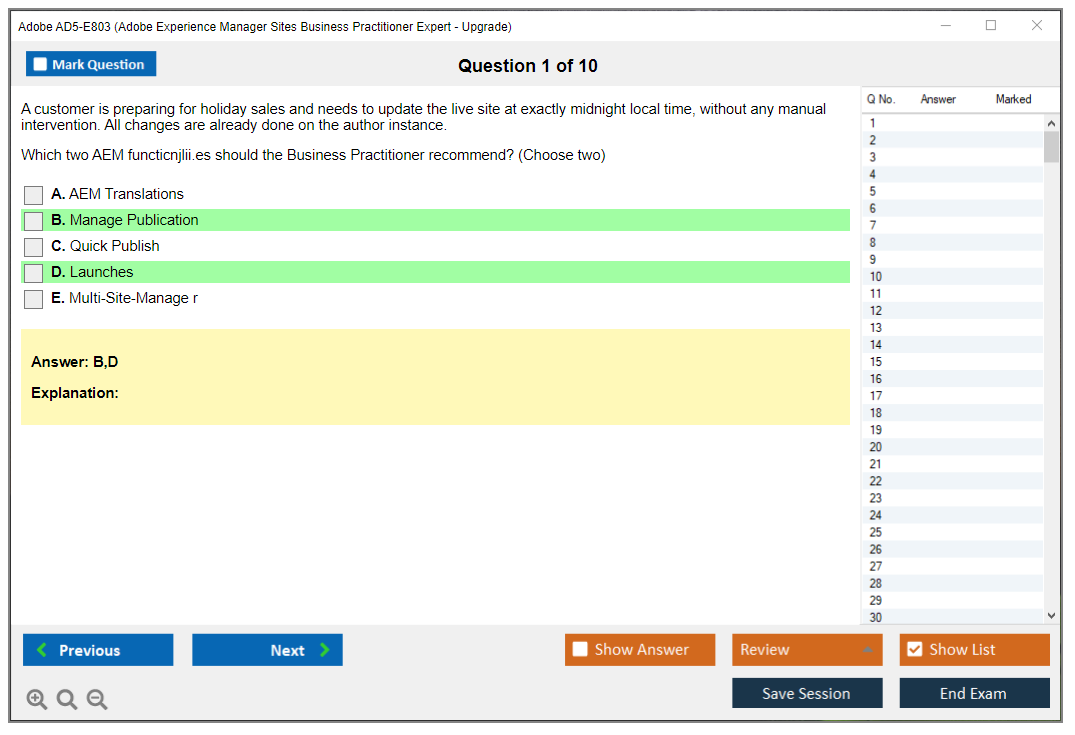 Note: Adobe AD5-E803 (Adobe Experience Manager Sites Business Practitioner Expert - Upgrade) will not receive any new updates.