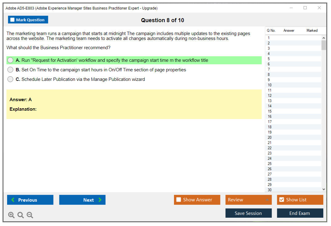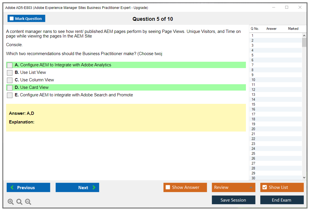The Adobe AD5-E803 (Adobe Experience Manager Sites Business Practitioner Expert - Upgrade) exam is an advanced-level certification test for professionals who are already certified in Adobe Experience Manager Sites and wish to validate their expertise at a higher level.
