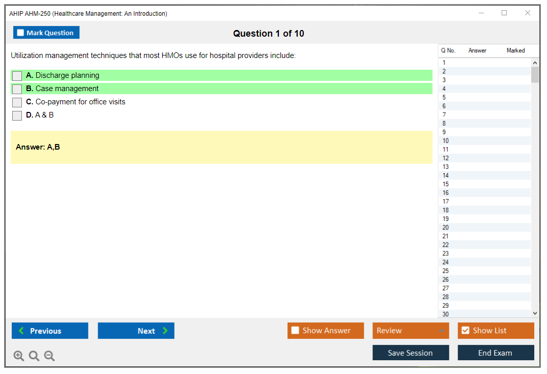 Aspire à excelência na gestão de cuidados de saúde – DumpsBoss para AHIP AHM-250 é a sua arma secreta. Explore uma variedade de materiais focados em exames, garantindo que você não apenas seja aprovado, mas se destaque na certificação AHIP Healthcare Management: An Introduction.