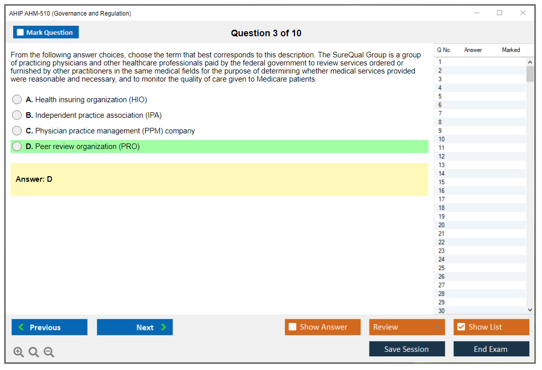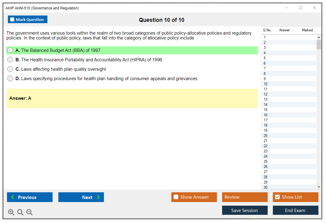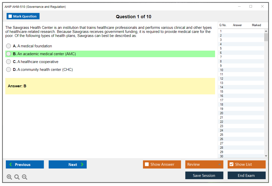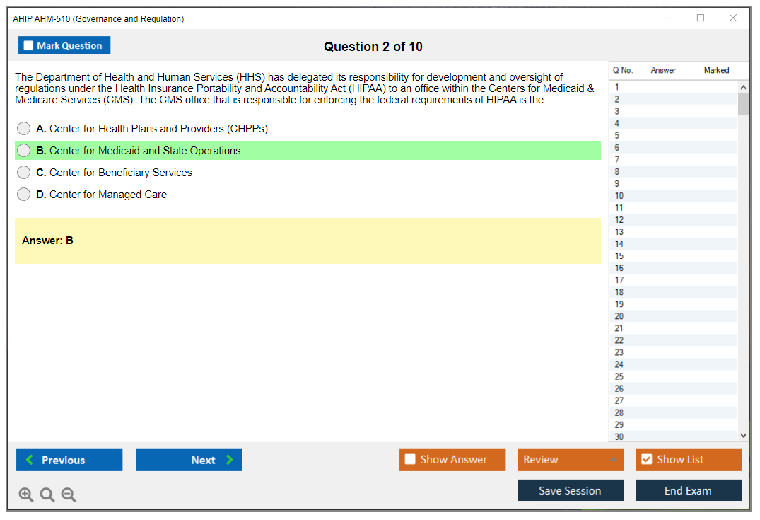 The AHIP AHM-510 Exam is a certification exam offered by America's Health Insurance Plans (AHIP) to assess the knowledge and skills of individuals in the area of healthcare governance and regulation.
