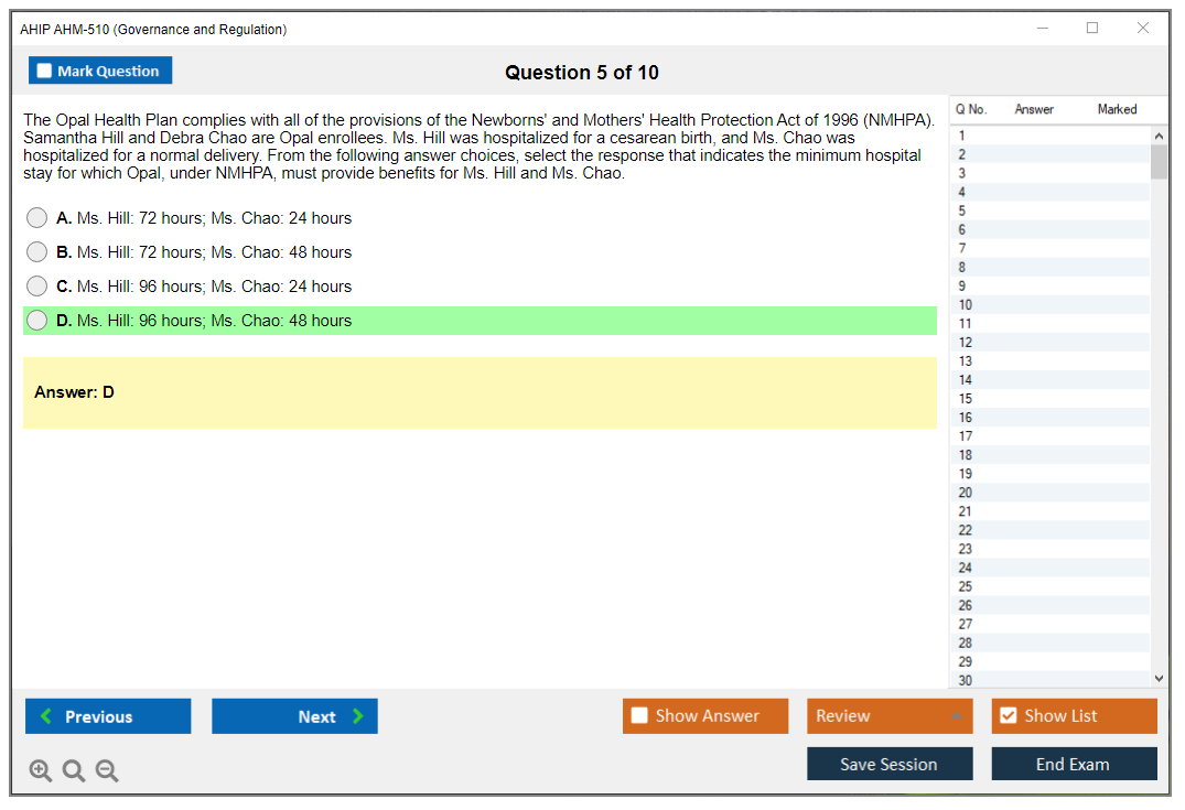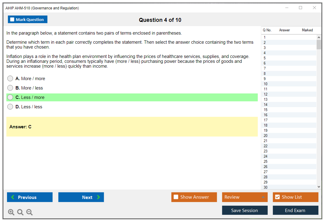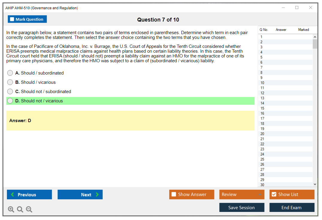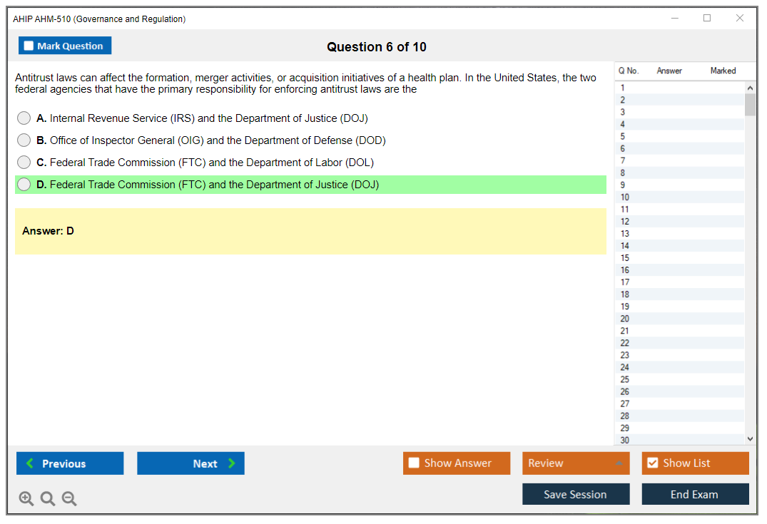 The AHIP AHM-510 Exam is a certification exam offered by America's Health Insurance Plans (AHIP) to assess the knowledge and skills of individuals in the area of healthcare governance and regulation.
