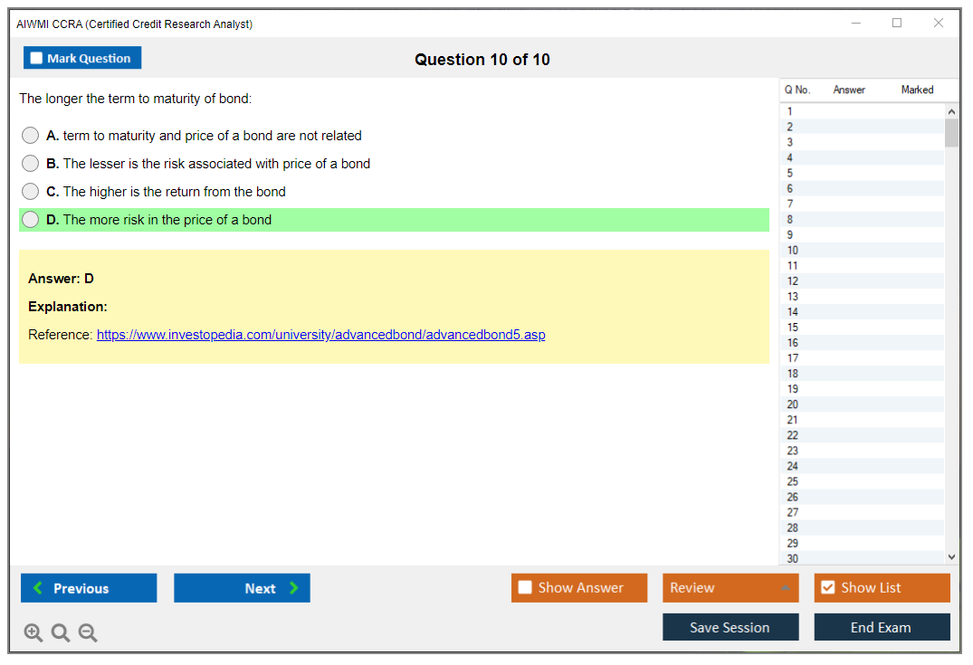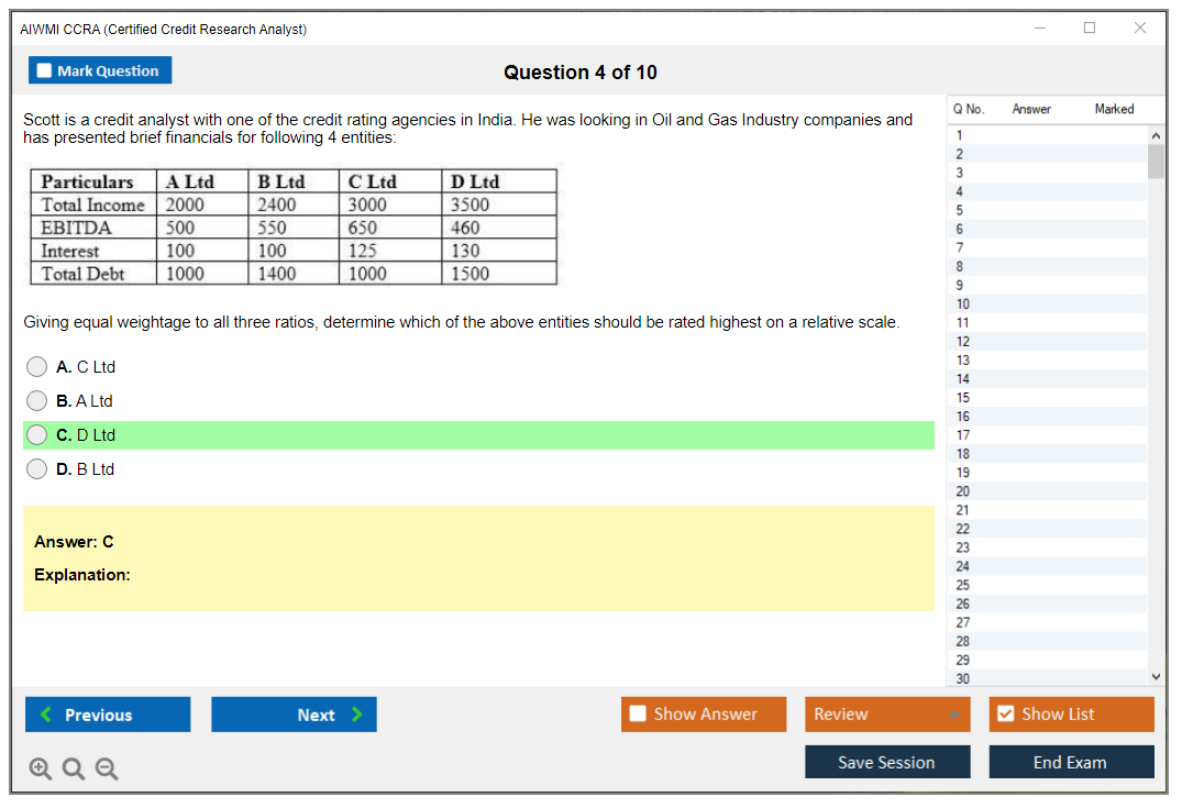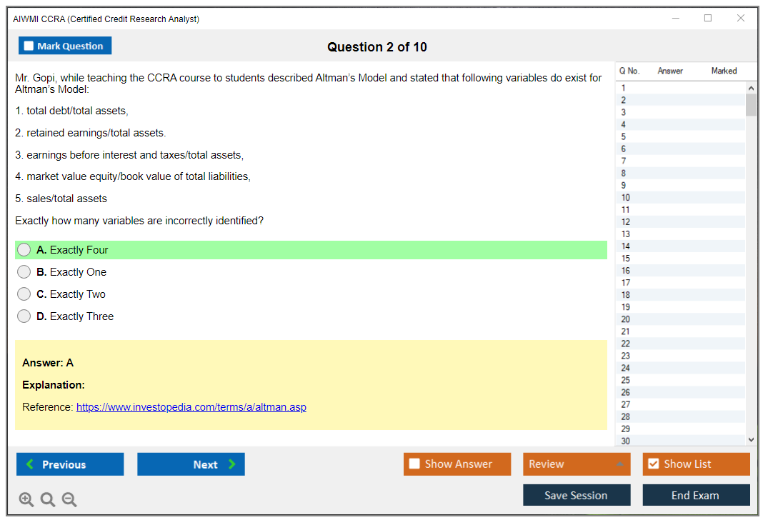 The AIWMI CCRA (Certified Credit Research Analyst) Exam is a globally recognized certification program designed to equip professionals with the skills and knowledge necessary for credit research and analysis. It is offered by the Association of International Wealth Management of India (AIWMI).