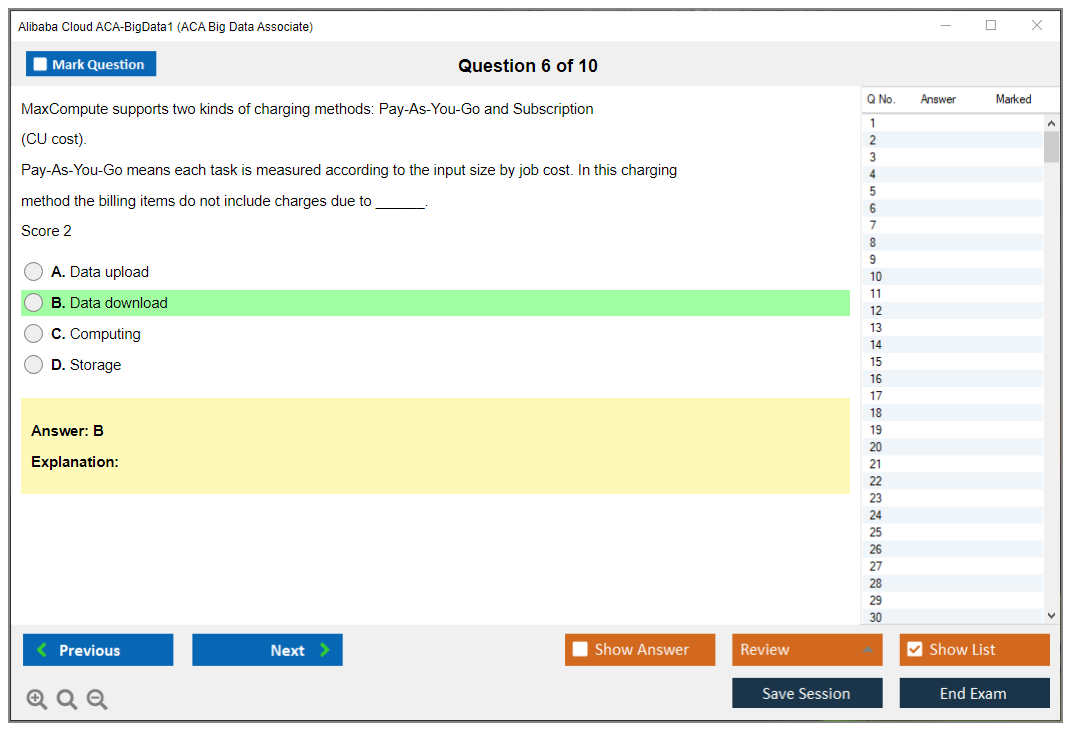 What is the Question Format of Alibaba Cloud ACA-BigData1 Exam?