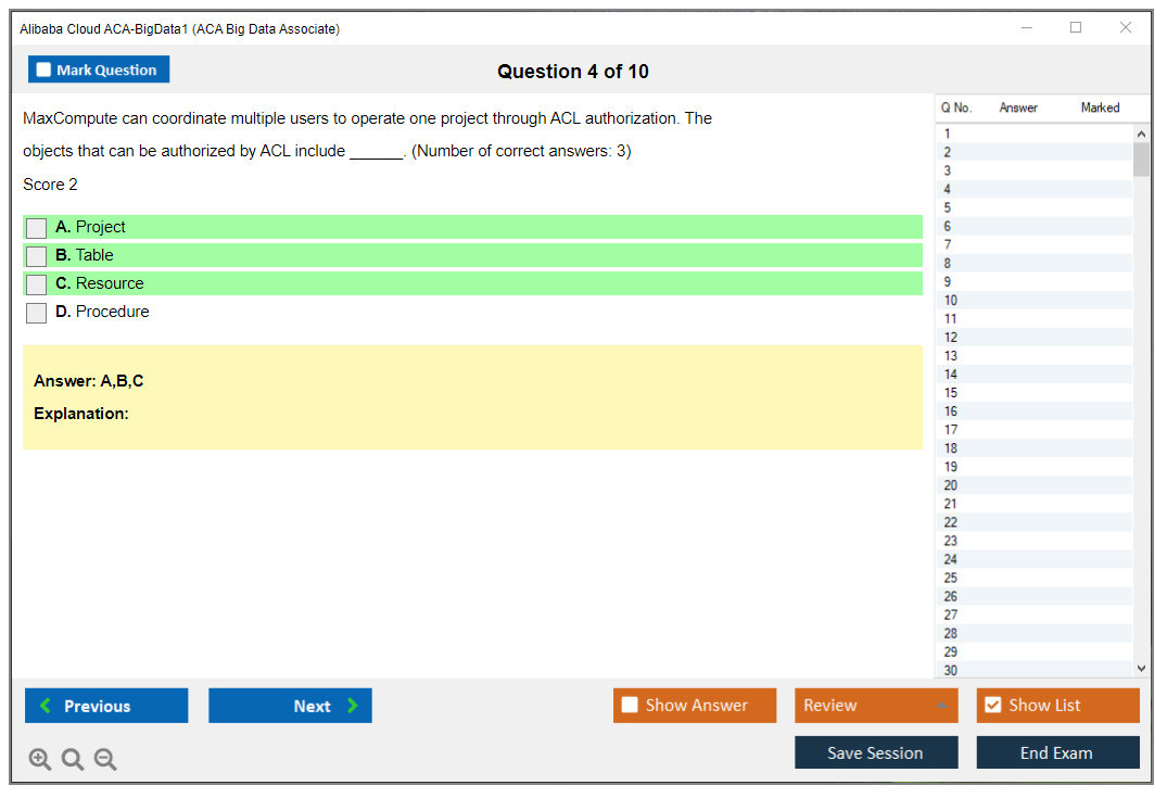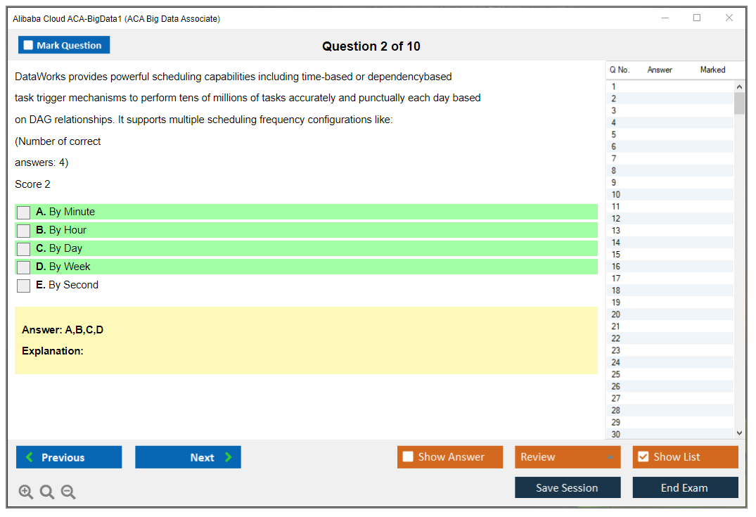 Impulsione sua experiência em nuvem com o DumpsBoss – o melhor recurso para conquistar o exame Alibaba Cloud ACA-BigData1. Desbloqueie um conjunto abrangente de materiais de estudo, garantindo que você esteja bem preparado para se destacar na certificação Alibaba Cloud Certified Associate – Big Data.