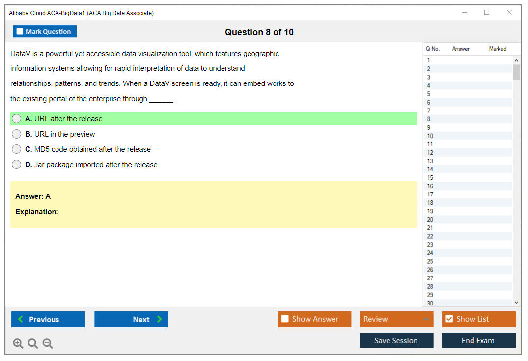 I aced my ACA-BigData1 exam thanks to DumpsBoss! Their practice test is meticulously crafted, offering a realistic exam experience. The well-structured questions and answers boosted my confidence significantly.
