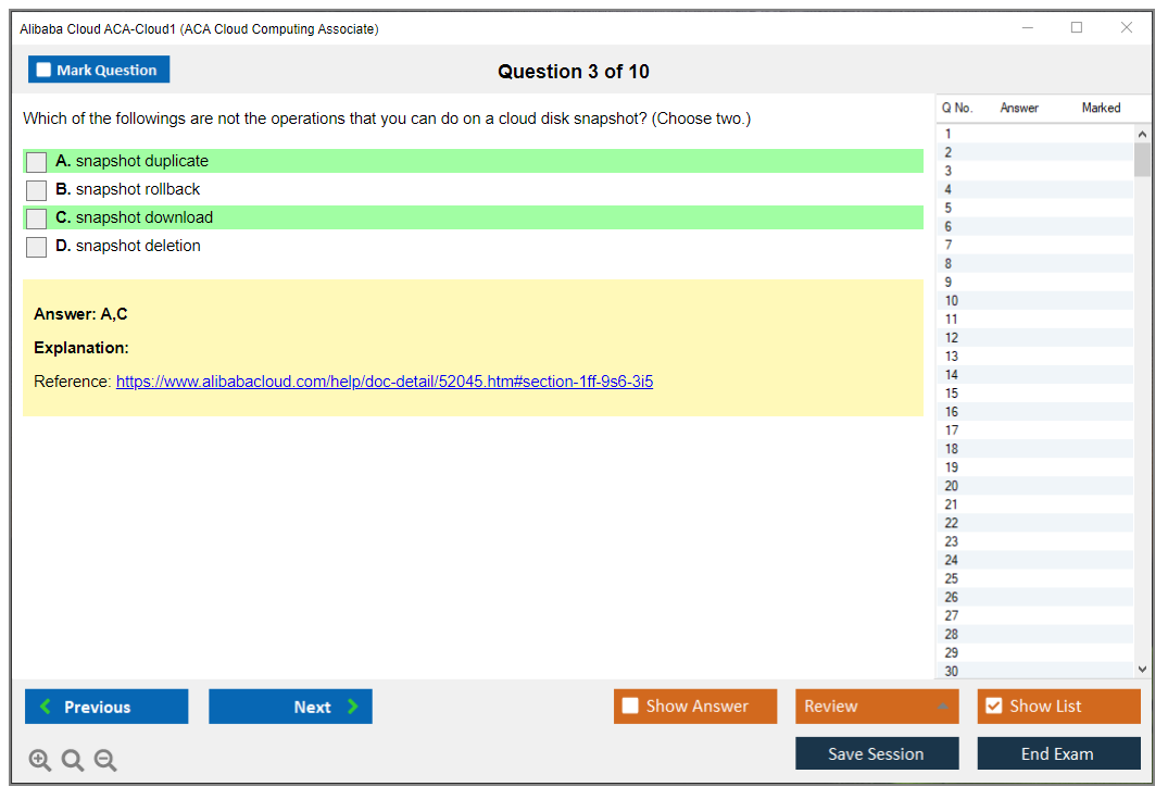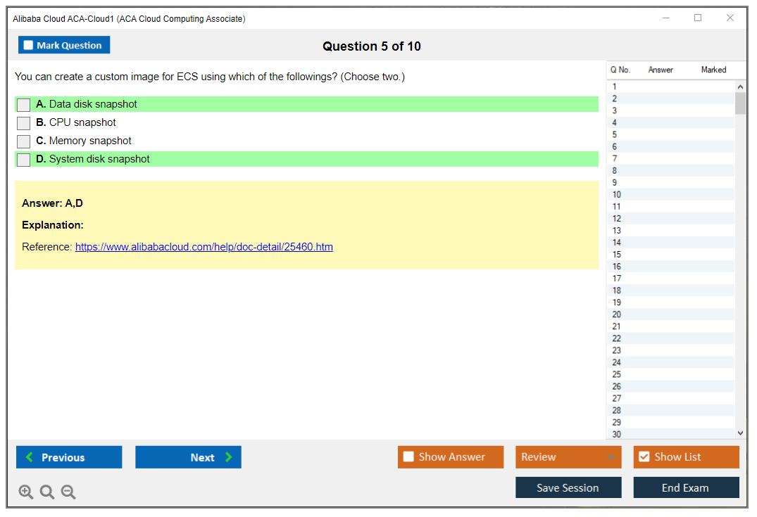 The Alibaba Cloud ACA-Cloud1 (ACA Cloud Computing Associate) Exam is a certification exam designed to validate the knowledge and skills of individuals in cloud computing, focusing on Alibaba Cloud services and solutions.