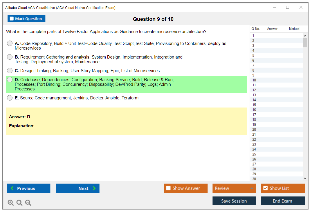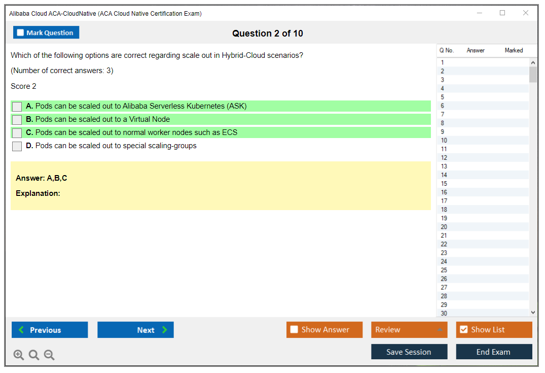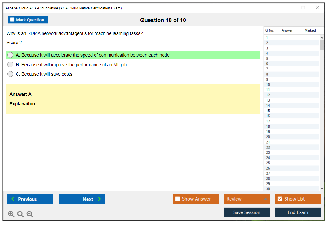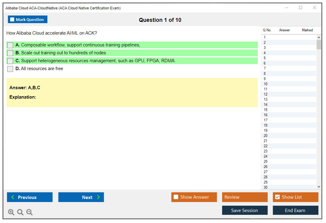 The Alibaba Cloud ACA-CloudNative (ACA Cloud Native Certification Exam) is designed to validate the skills and knowledge of individuals in cloud-native technologies, including Kubernetes, Docker, and other container technologies. It focuses on the practical use of these technologies in deploying and managing applications on Alibaba Cloud.
