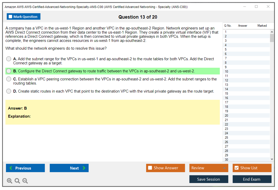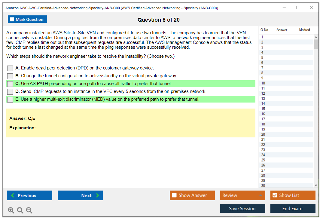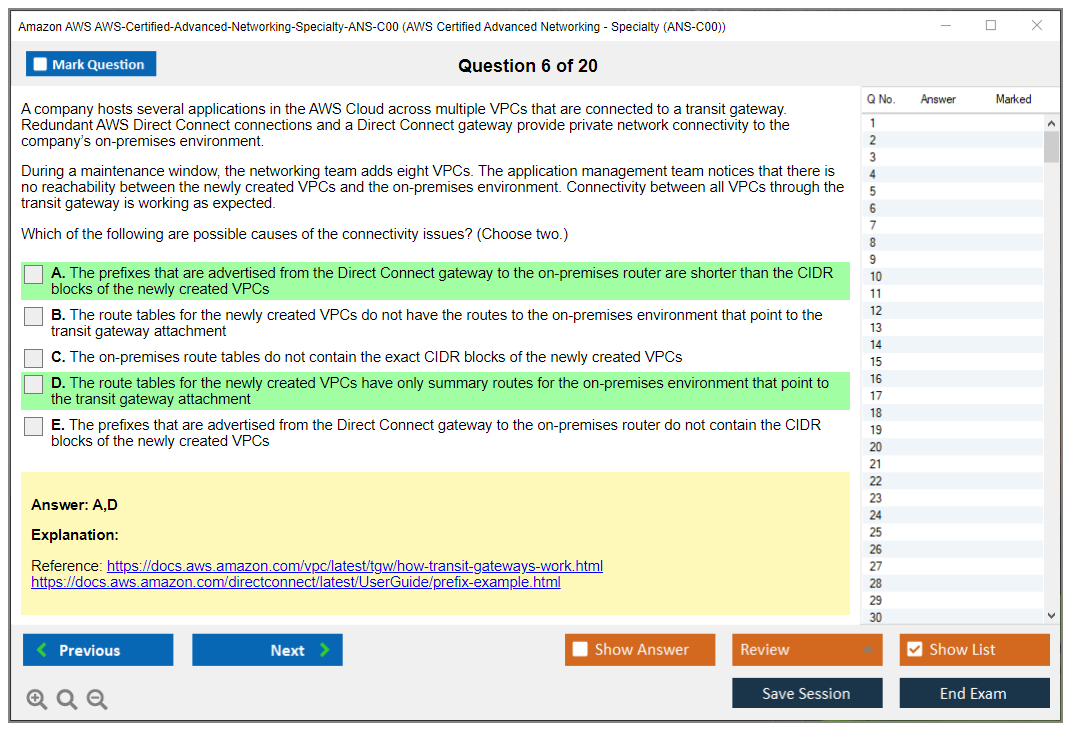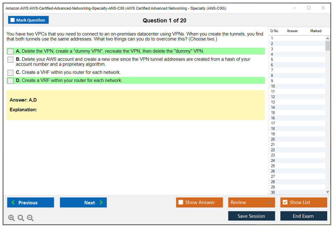 Amazon AWS-Certified-Advanced-Networking-Specialty-ANS-C00 Exam Dumps The explanations are written in an easy-to-understand format and there are plenty of practice questions and multiple-choice answers to help students become even more confident in their preparation.