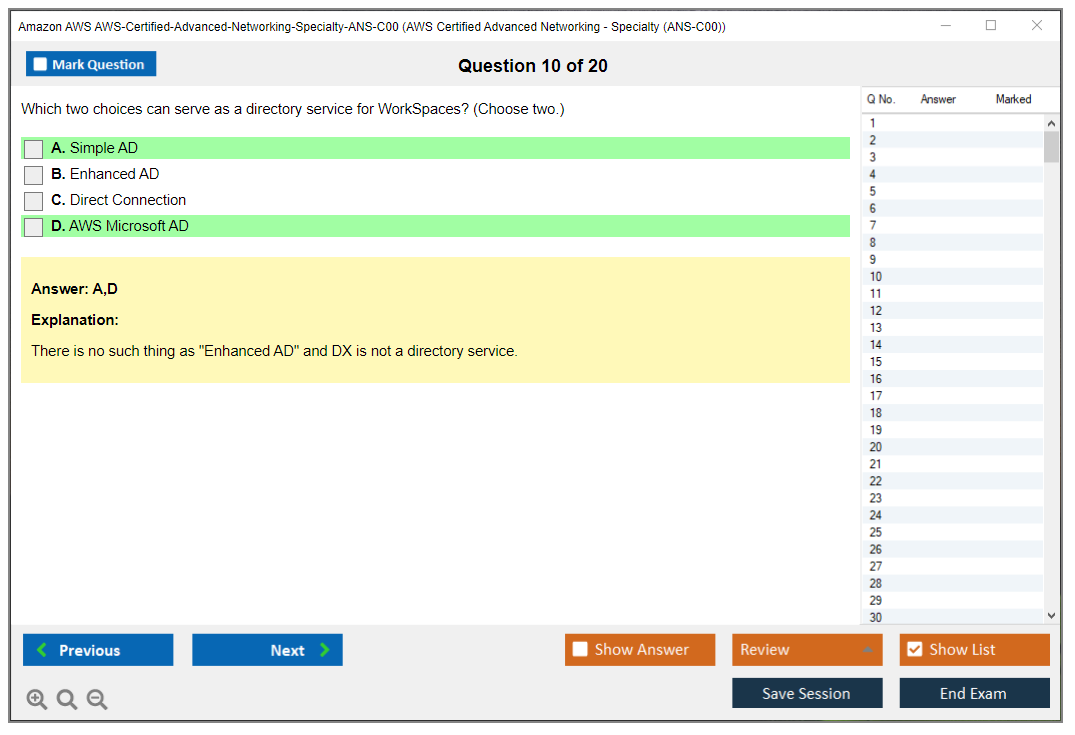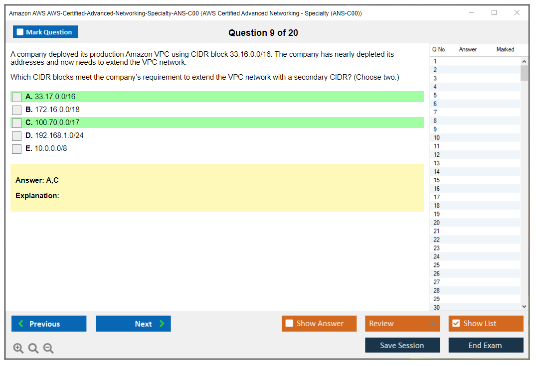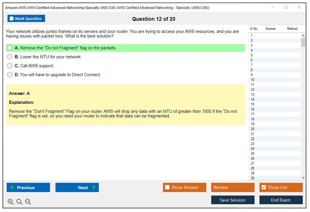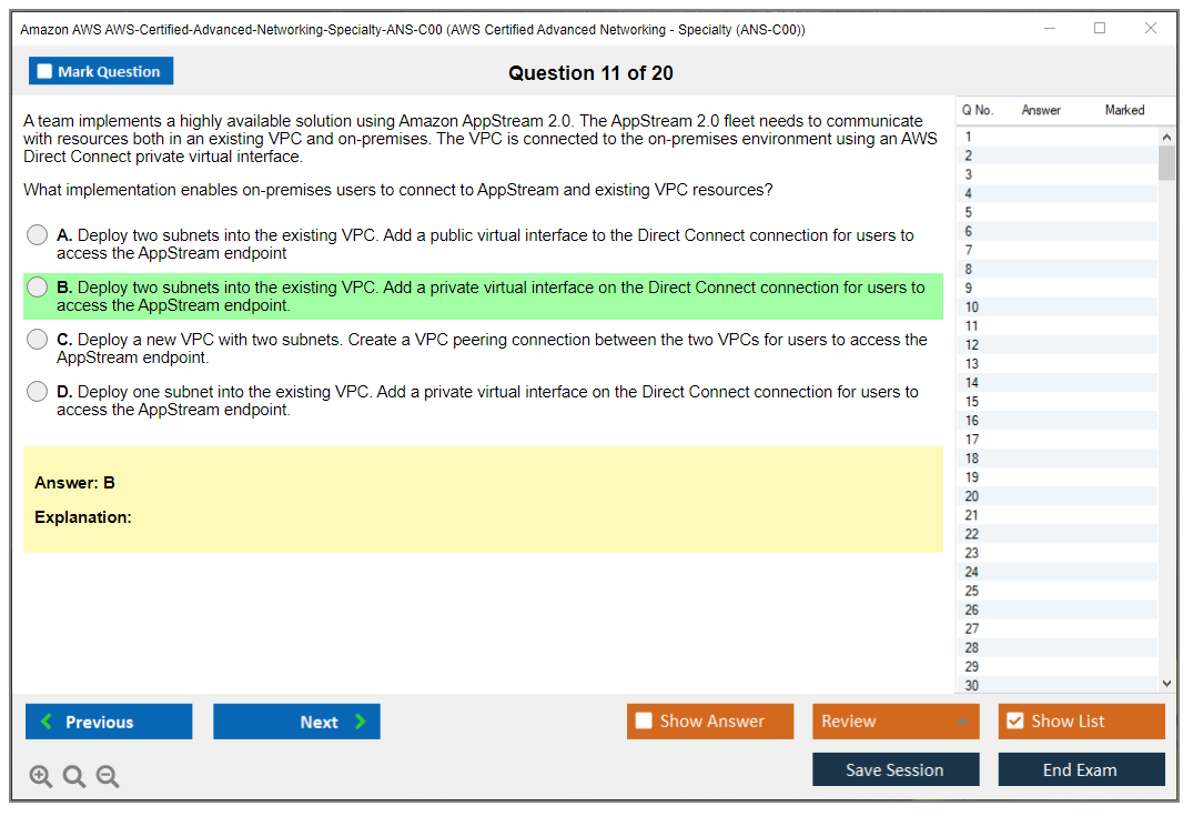Amazon AWS-Certified-Advanced-Networking-Specialty-ANS-C00 Exam Dumps The explanations are written in an easy-to-understand format and there are plenty of practice questions and multiple-choice answers to help students become even more confident in their preparation.
