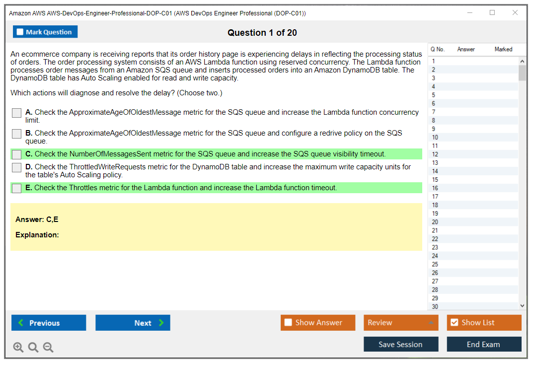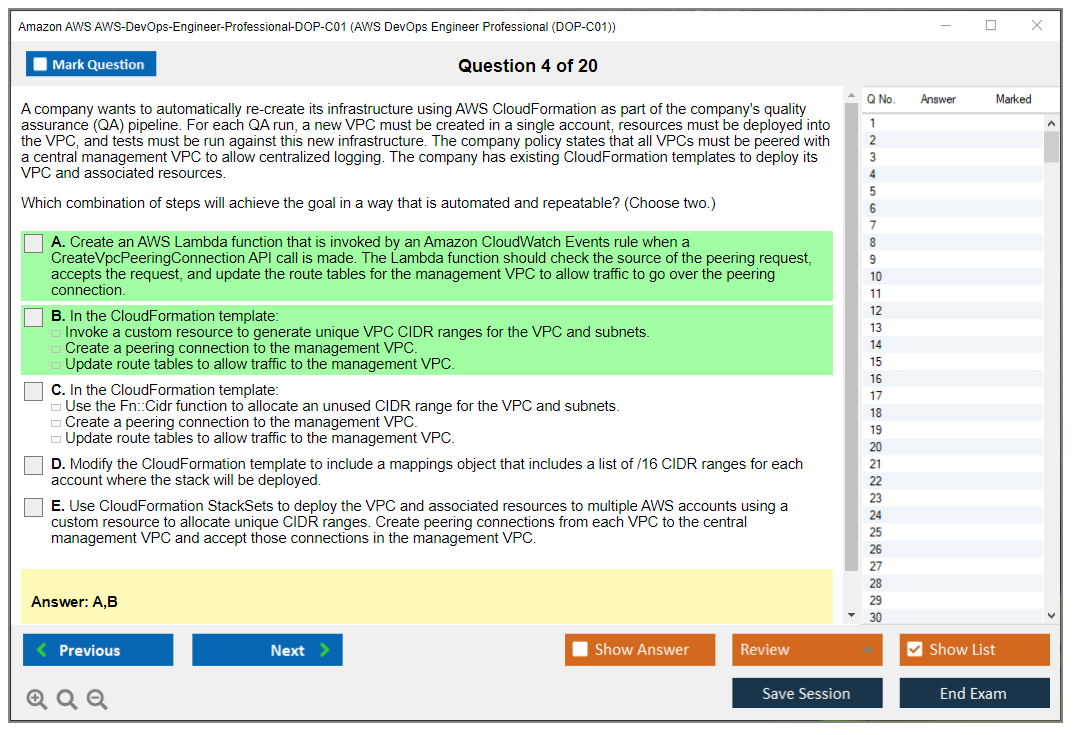Sample questions for the Amazon AWS Certified DevOps Engineer - Professional (DOP-C01) exam can be found on the official AWS certification website or through various third-party study guides and practice exams.