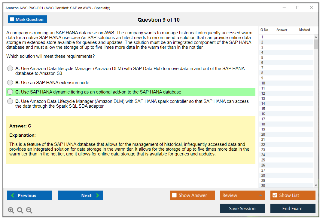 The Amazon AWS PAS-C01 exam is a specialty certification that tests the skills and knowledge required to design, deploy, and manage SAP workloads on the AWS platform. It is intended for professionals who have experience with both SAP solutions and AWS services.