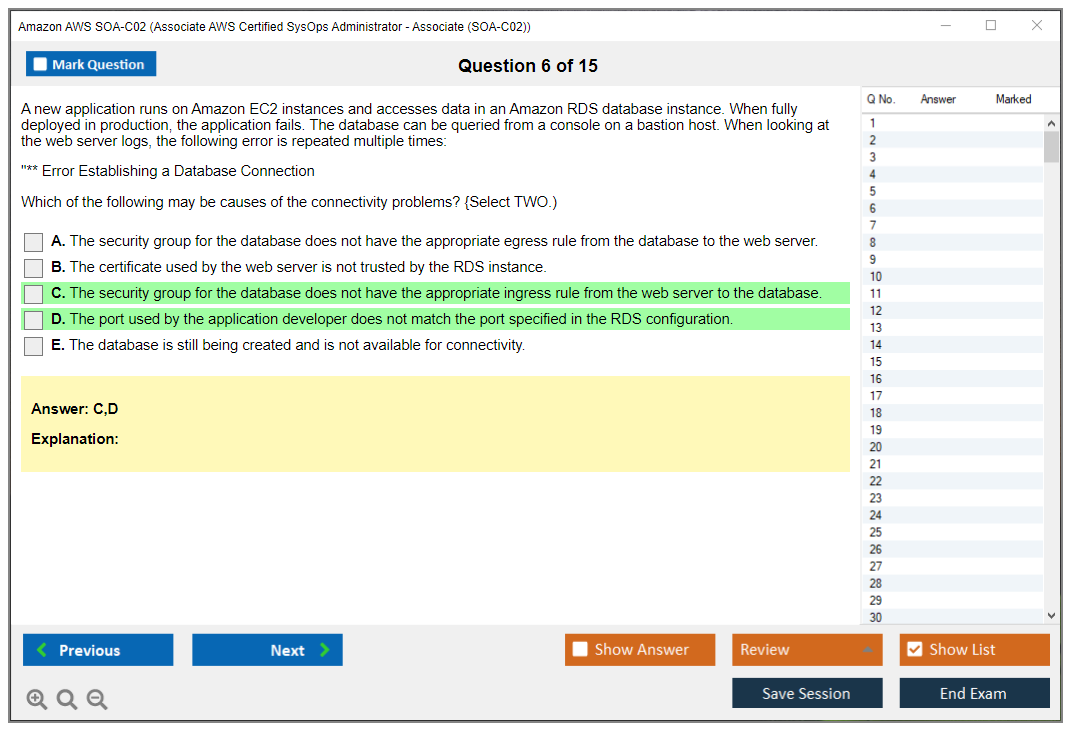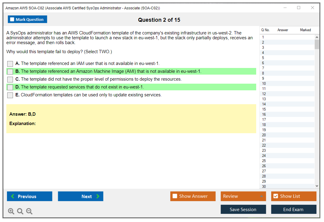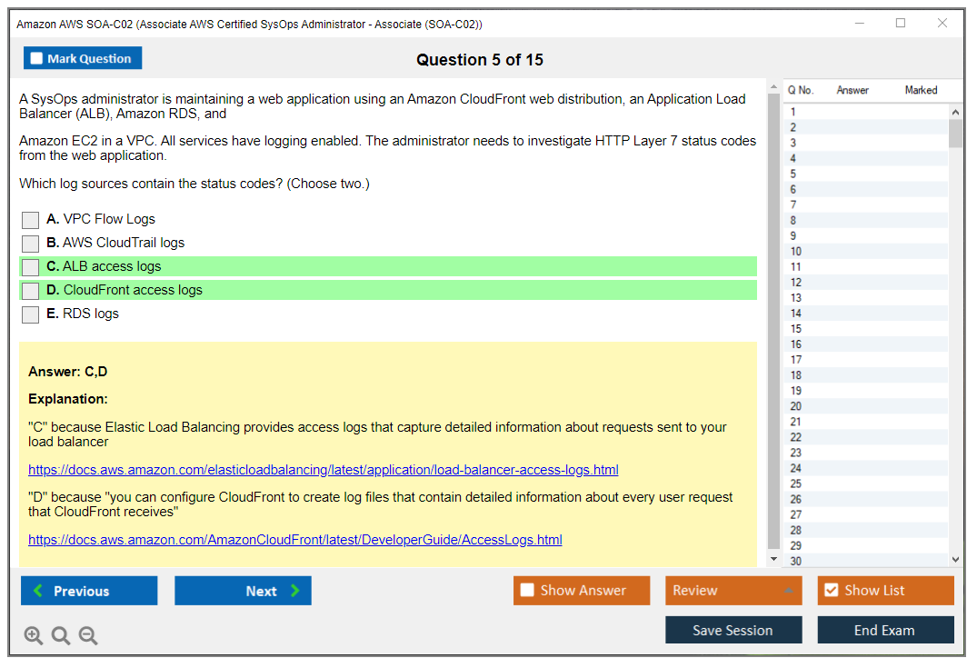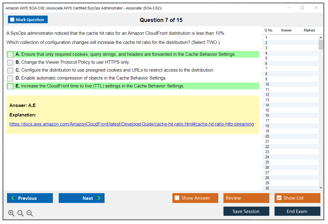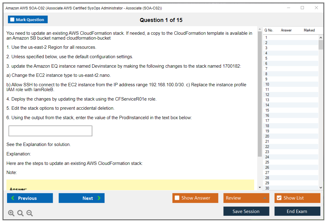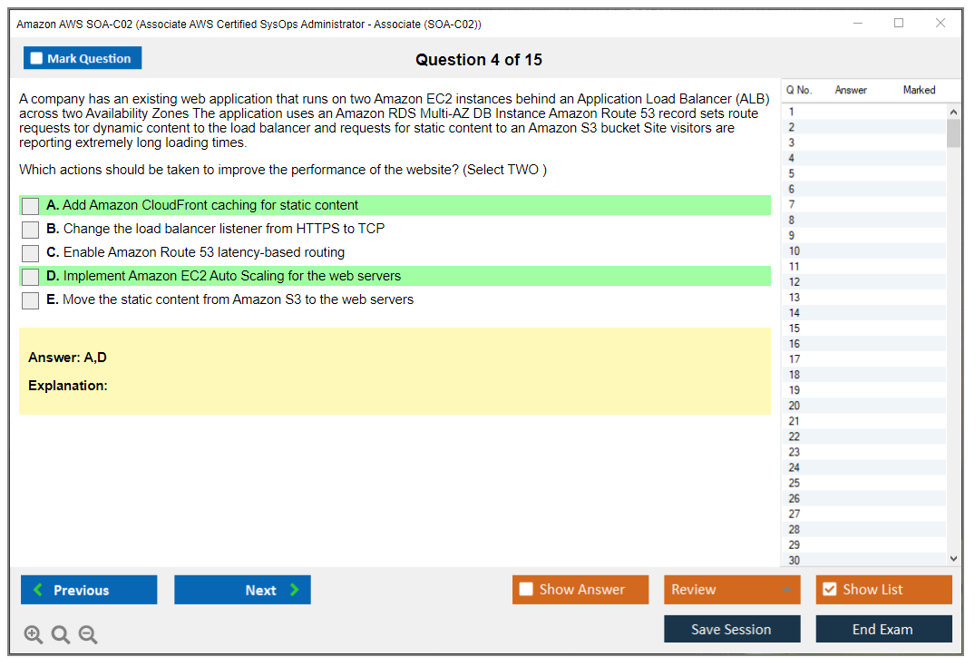 The question format of the Amazon AWS SOA-C02 exam includes multiple-choice and multiple-response questions.