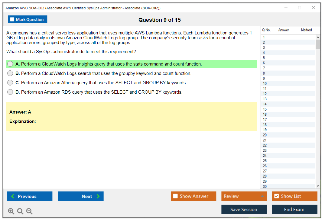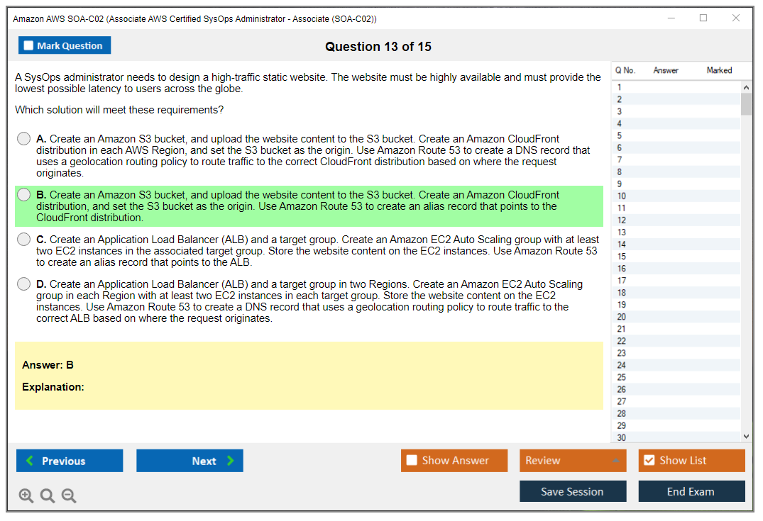 The Amazon AWS SOA-C02 (AWS Certified SysOps Administrator - Associate) exam is designed to validate the technical expertise of candidates in deploying, managing, and operating scalable, highly available, and fault-tolerant systems on AWS. It is intended for system administrators in cloud operations roles to demonstrate their ability to implement and manage AWS systems.