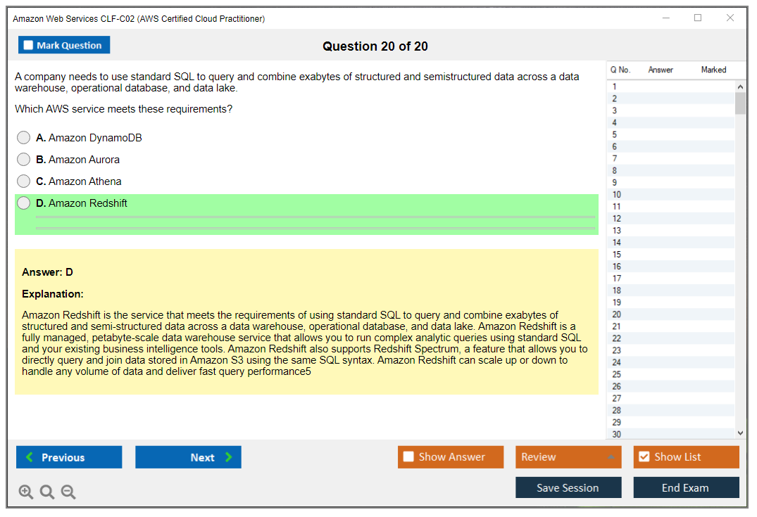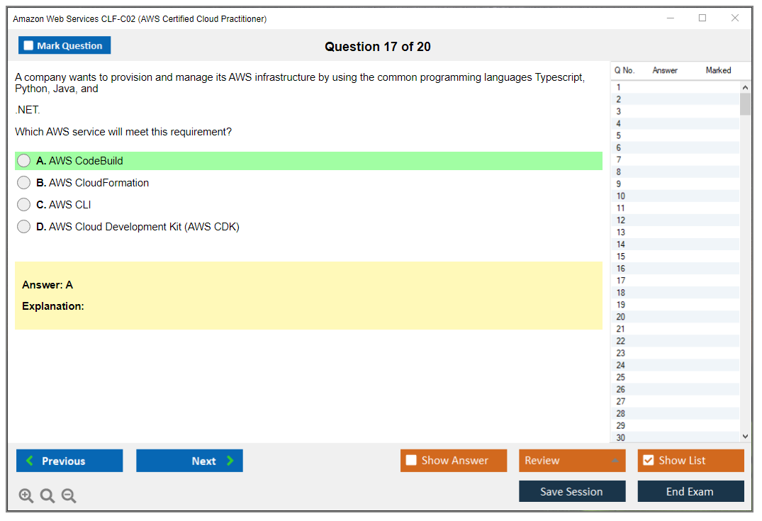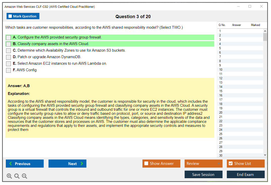 Preparing for my AWS CLF-C02 certification was a breeze with DumpsBoss. Their practice exam was thorough and up-to-date, making me feel fully prepared on test day. DumpsBoss is the best choice for AWS exam prep!