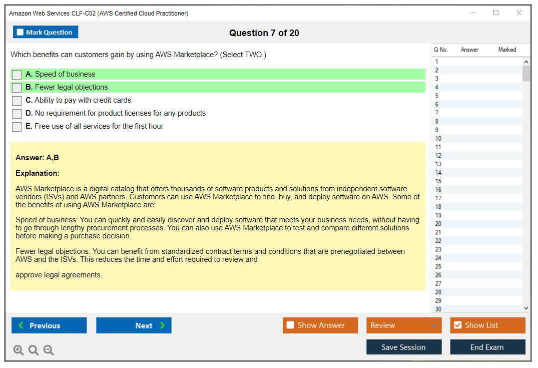 DumpsBoss offers an exceptional AWS Cloud Practitioner Practice Exam Free PDF that helped me tremendously in my exam preparation. It’s comprehensive, accurate, and a must-have resource for passing the exam with ease.