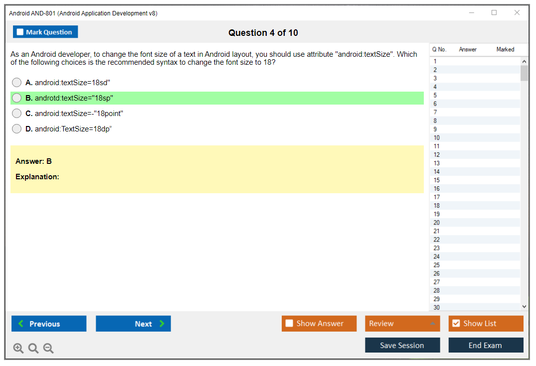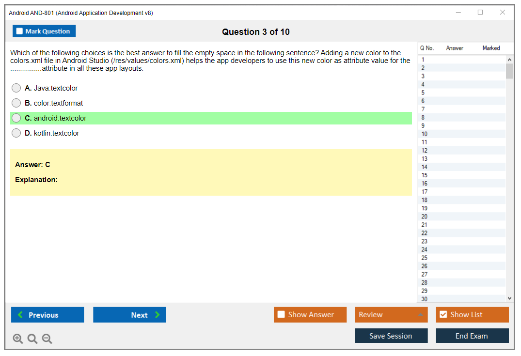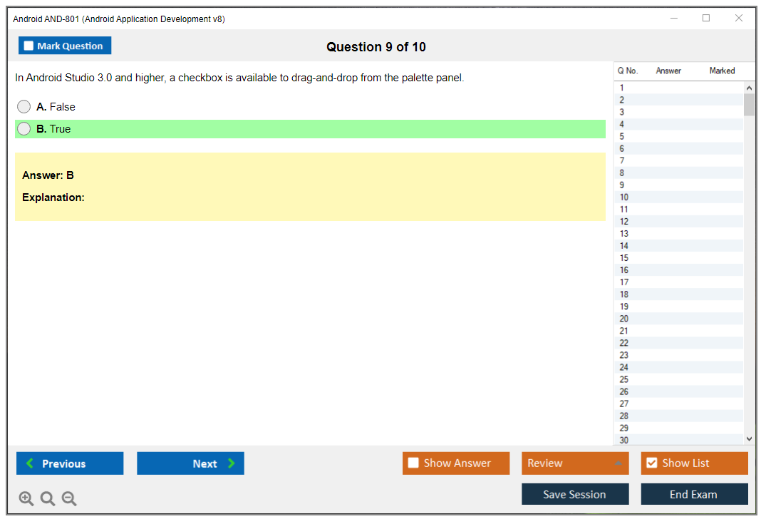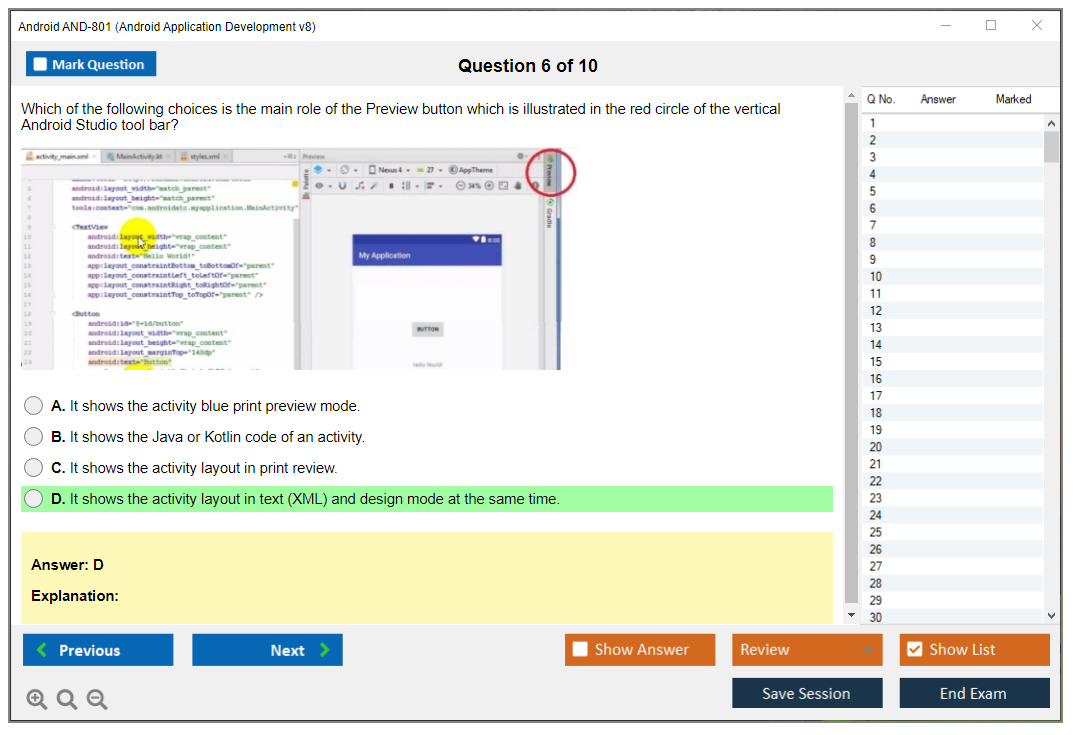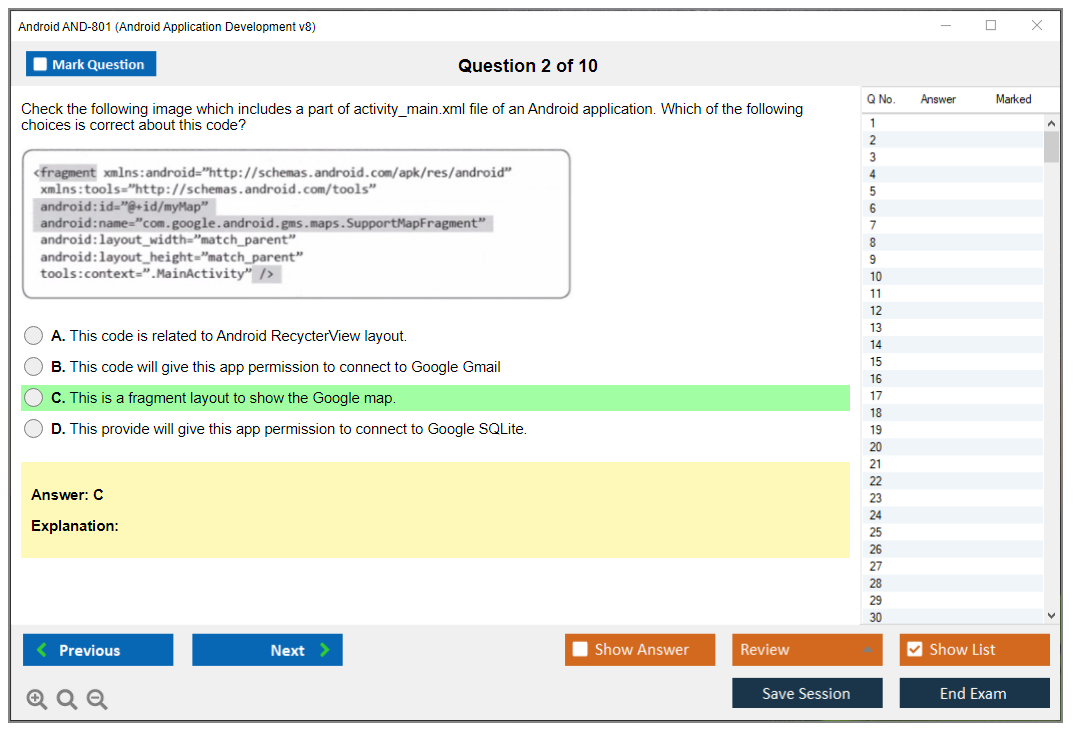 The question format of the Android AND-801 Exam is multiple-choice and multiple-response questions.
