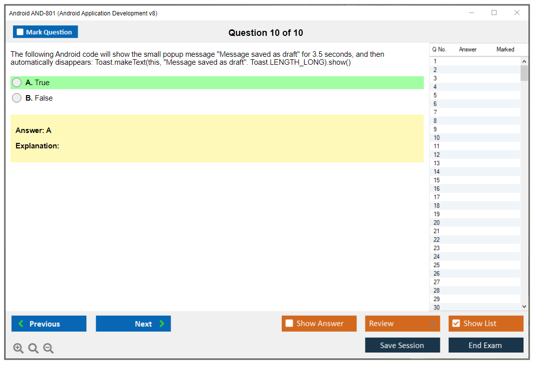 DumpsBoss AND-801 Questions are top-notch! The comprehensive and detailed questions helped me understand the exam material thoroughly. A must-have resource for anyone preparing for the AND-801 exam!
