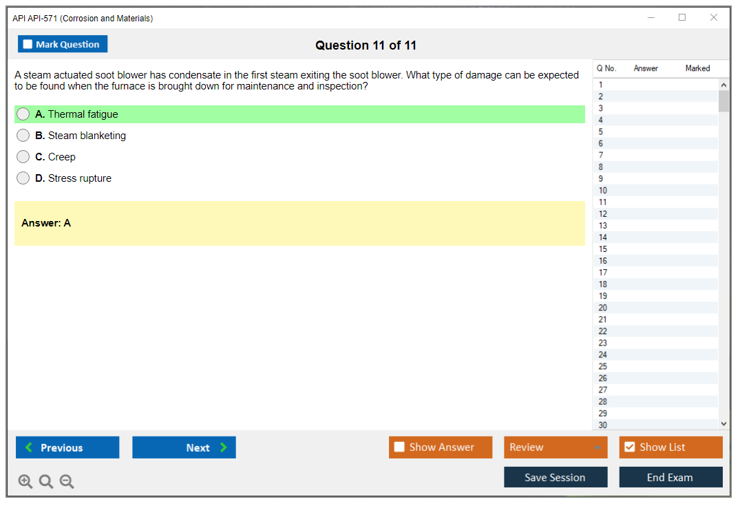 There are no formal prerequisites for the API-571 Exam, but it is recommended that candidates have relevant experience and knowledge in corrosion and materials.