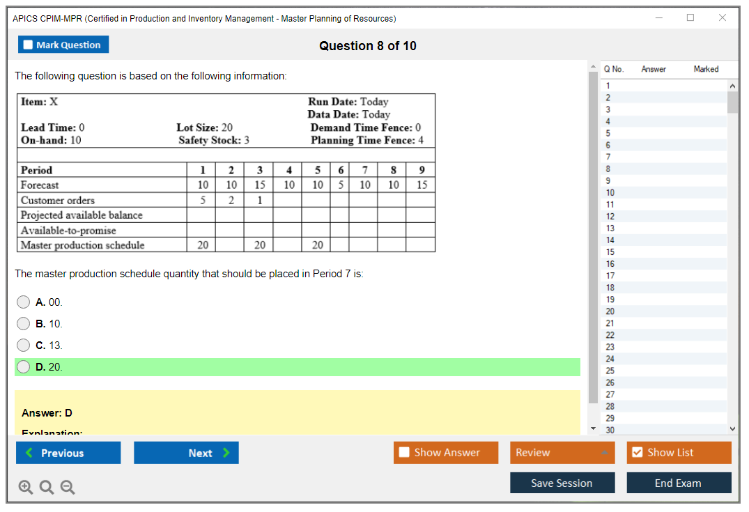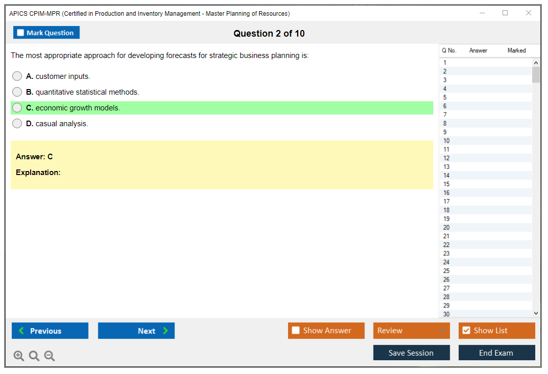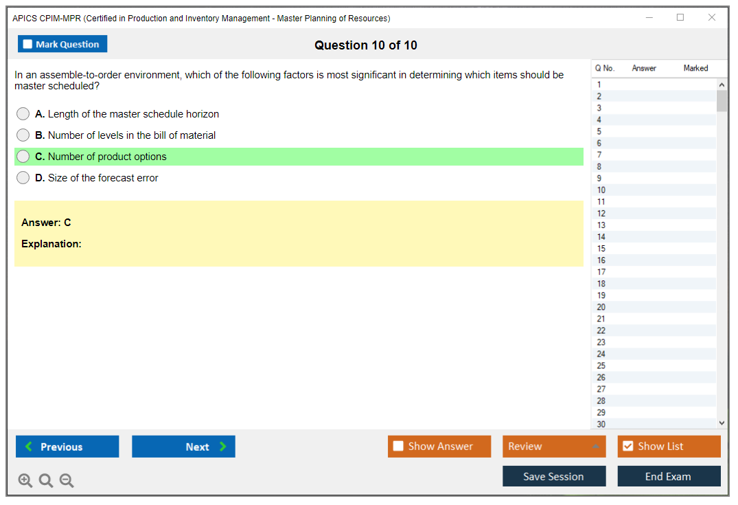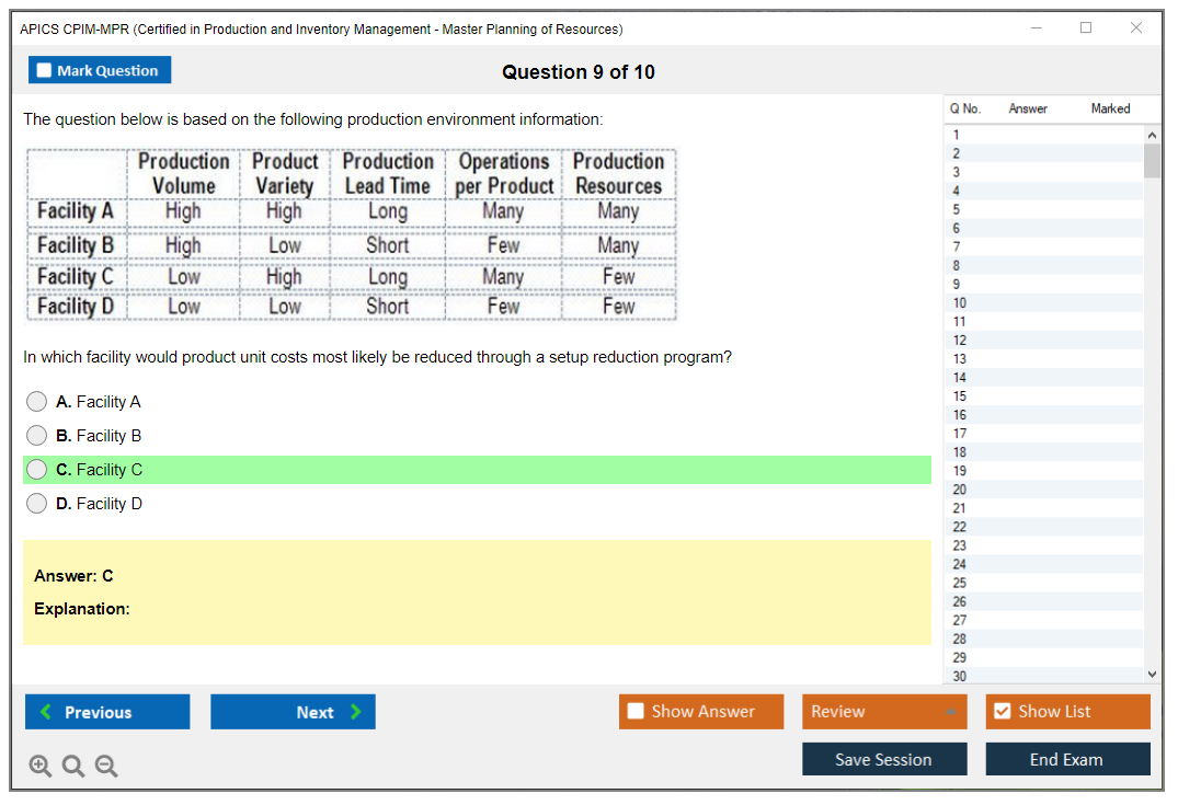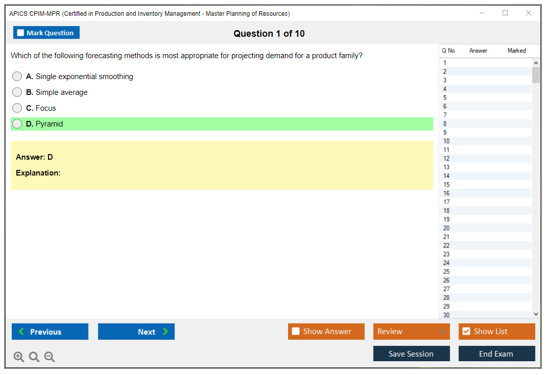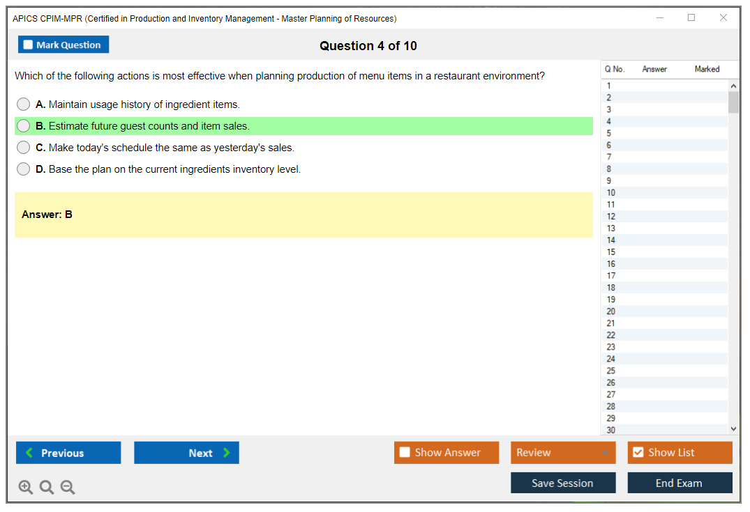 The APICS CPIM-MPR (Certified in Production and Inventory Management - Master Planning of Resources) Exam is a certification exam that focuses on the principles and practices of production and inventory management. It is designed to validate the knowledge and skills of professionals in the field of supply chain and operations management.