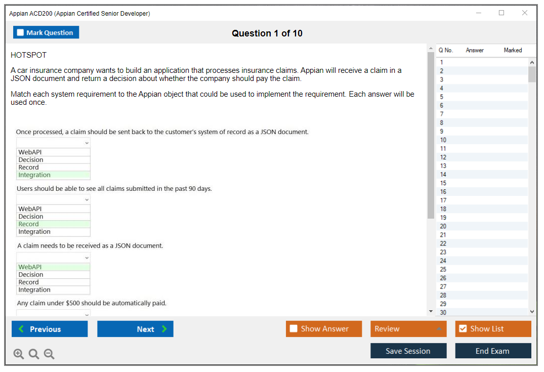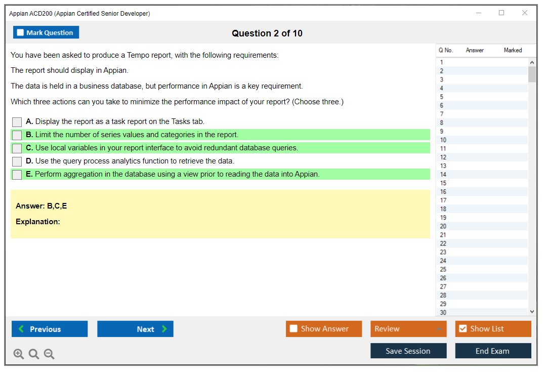 The Appian ACD200 (Appian Certified Senior Developer) Exam is a certification test designed for experienced Appian developers to validate their advanced skills and expertise in building and implementing complex solutions using the Appian platform.