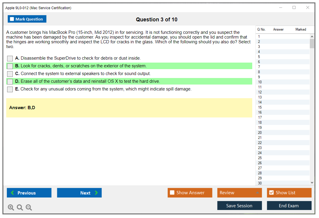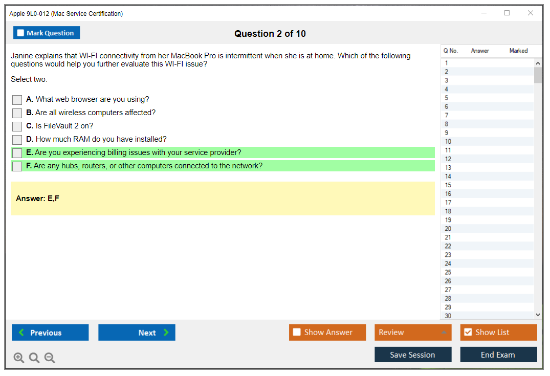 The question format of the Apple 9L0-012 Exam includes multiple-choice questions, scenario-based questions, and practical troubleshooting questions.