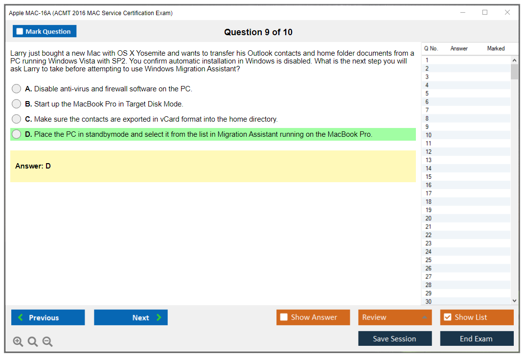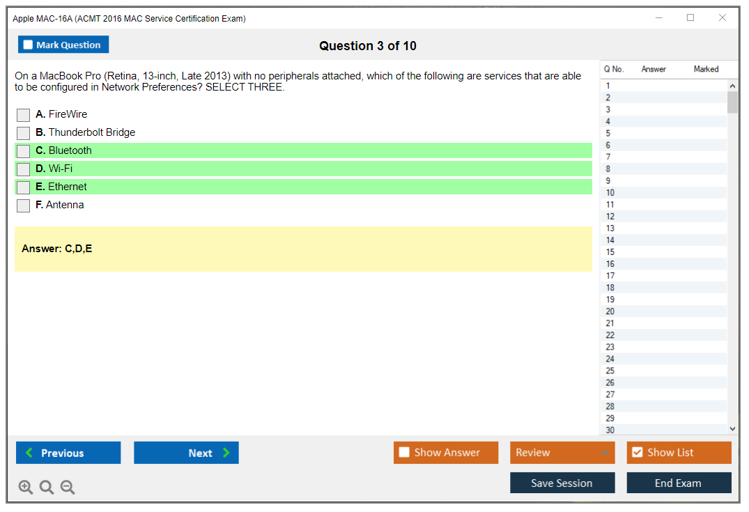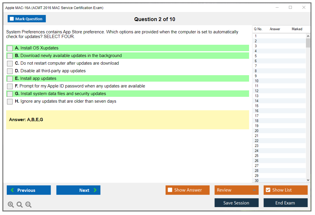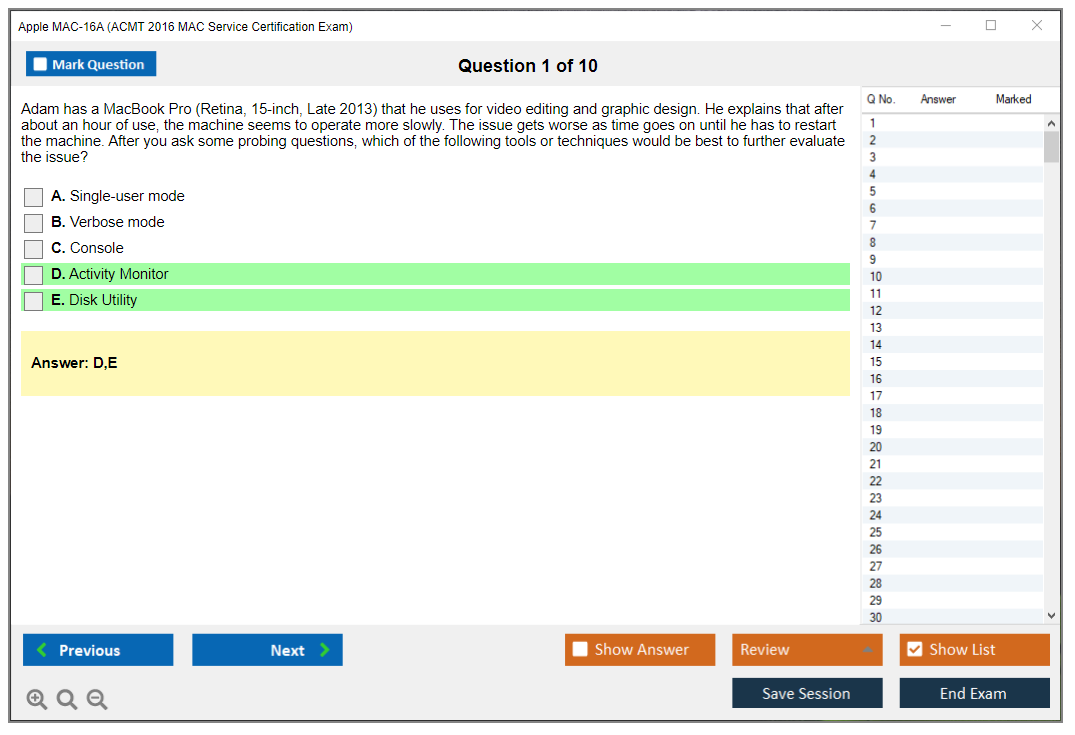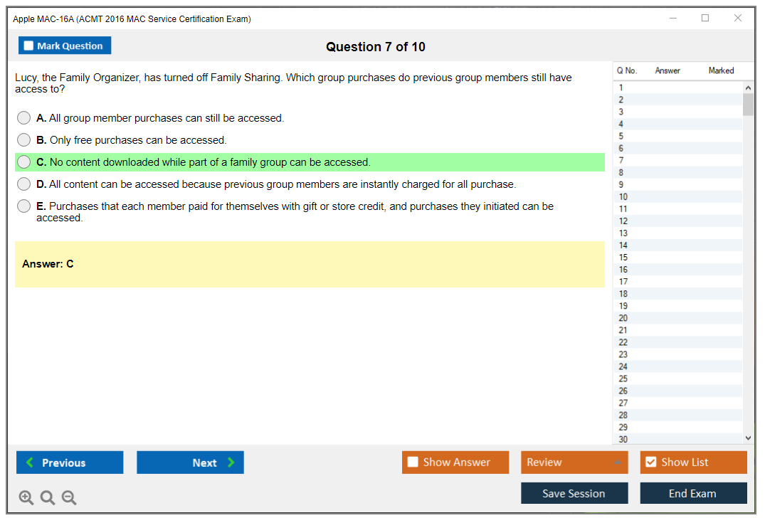 The question format of the Apple MAC-16A Exam includes multiple-choice questions, true/false questions, and scenario-based questions.