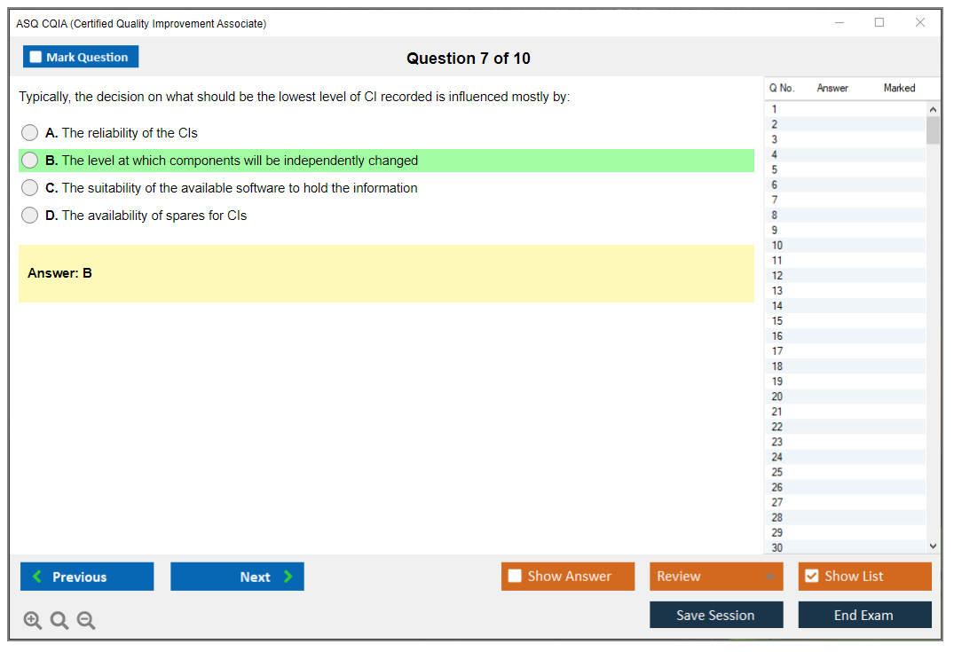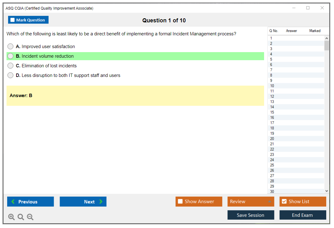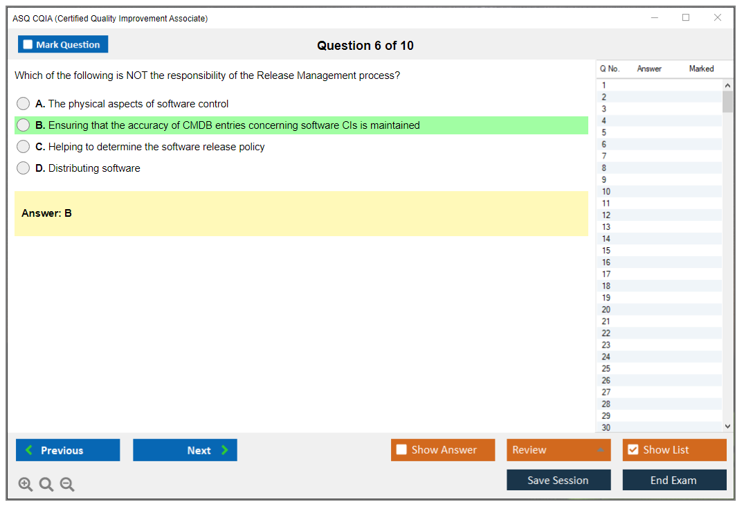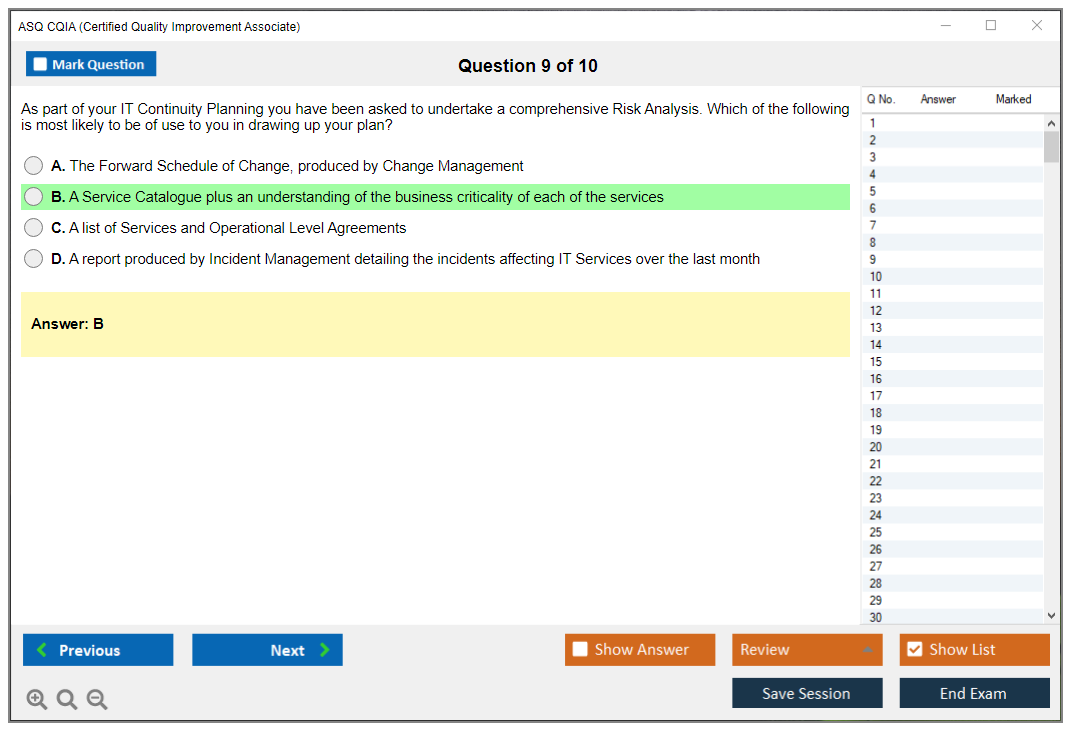 DumpsBoss is the go-to for ASQ CQIA prep! Their well-organized study material and practice exams were instrumental in my passing the certification with flying colors.