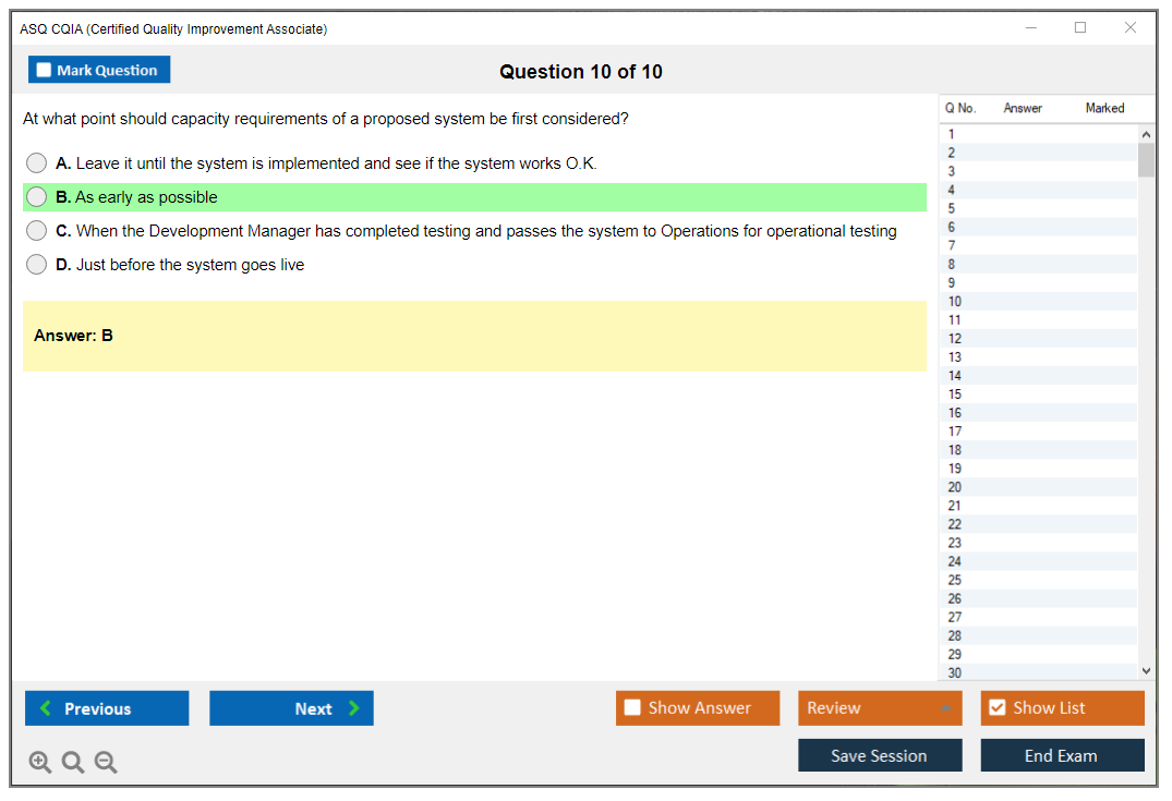 Muito obrigado à DumpsBoss por seu excelente material de estudo do exame ASQ CQIA. É claro, conciso e altamente eficaz.