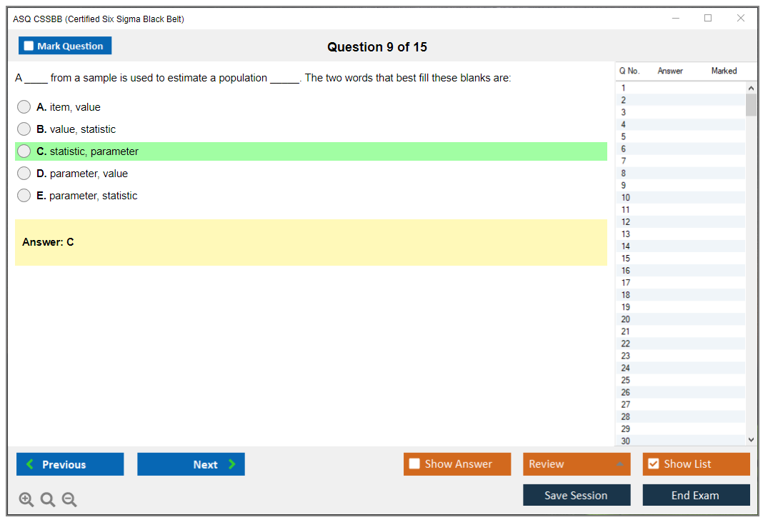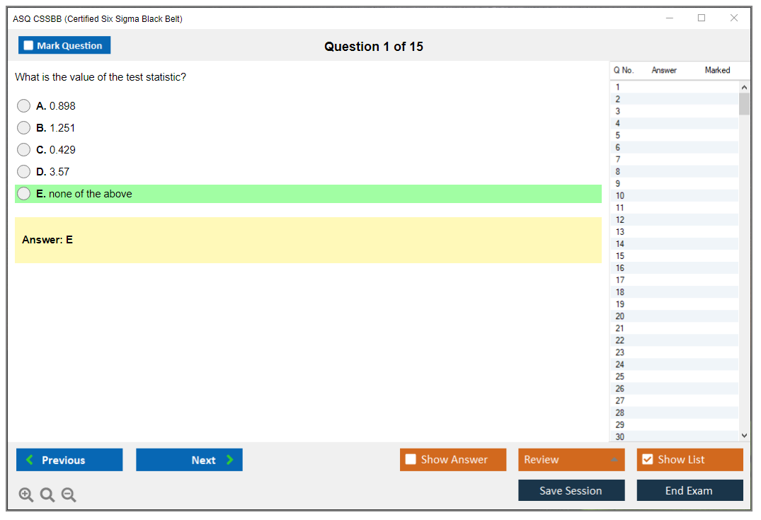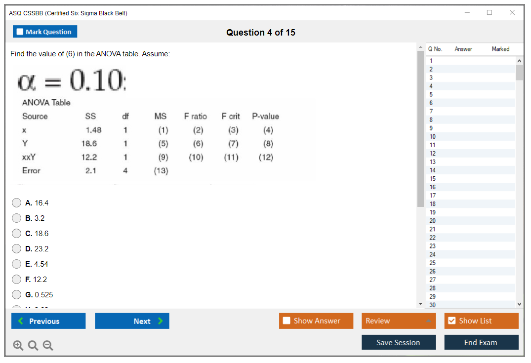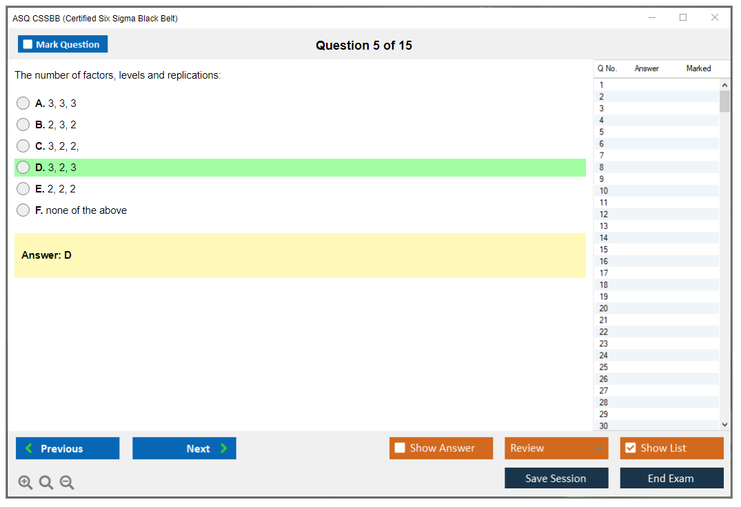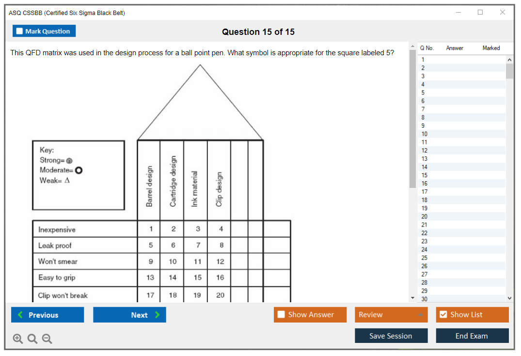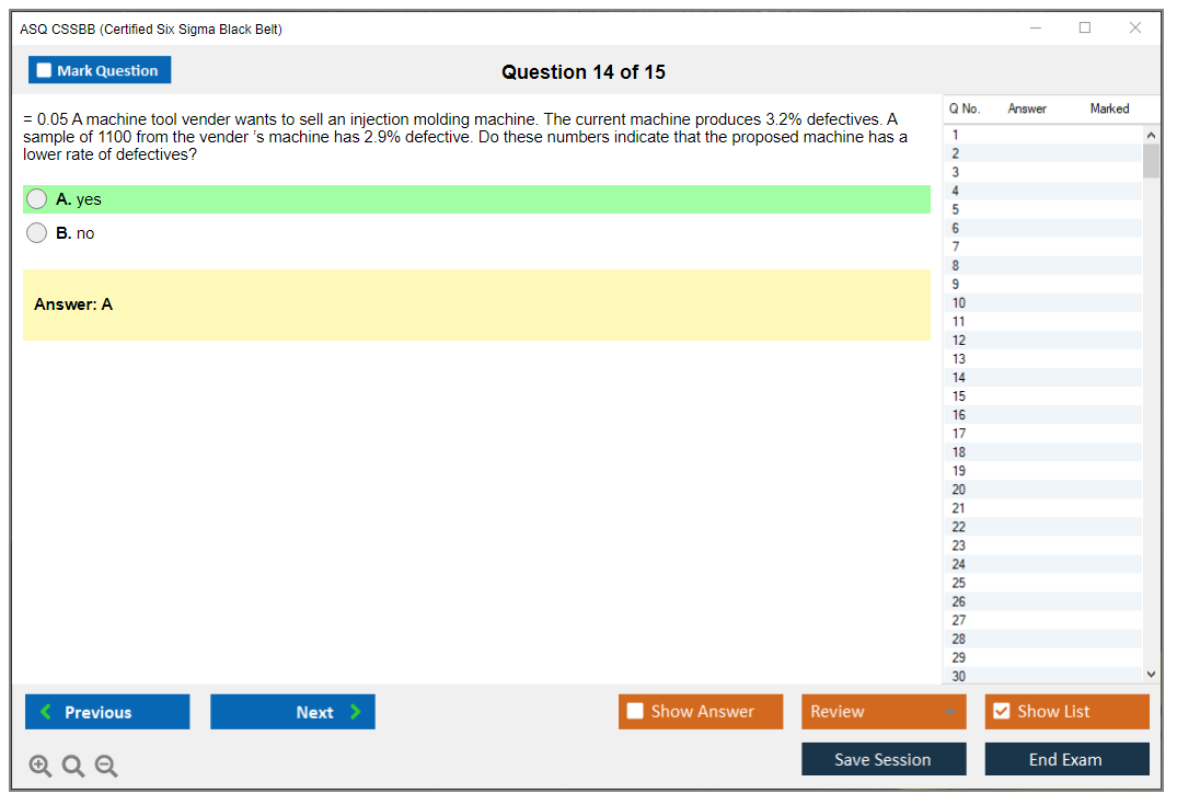 The ASQ CSSBB (Certified Six Sigma Black Belt) exam is a certification exam offered by the American Society for Quality (ASQ) for professionals who seek to demonstrate their expertise in Six Sigma methodologies and tools. The certification is designed for individuals who lead complex improvement projects and have a thorough understanding of Six Sigma principles.