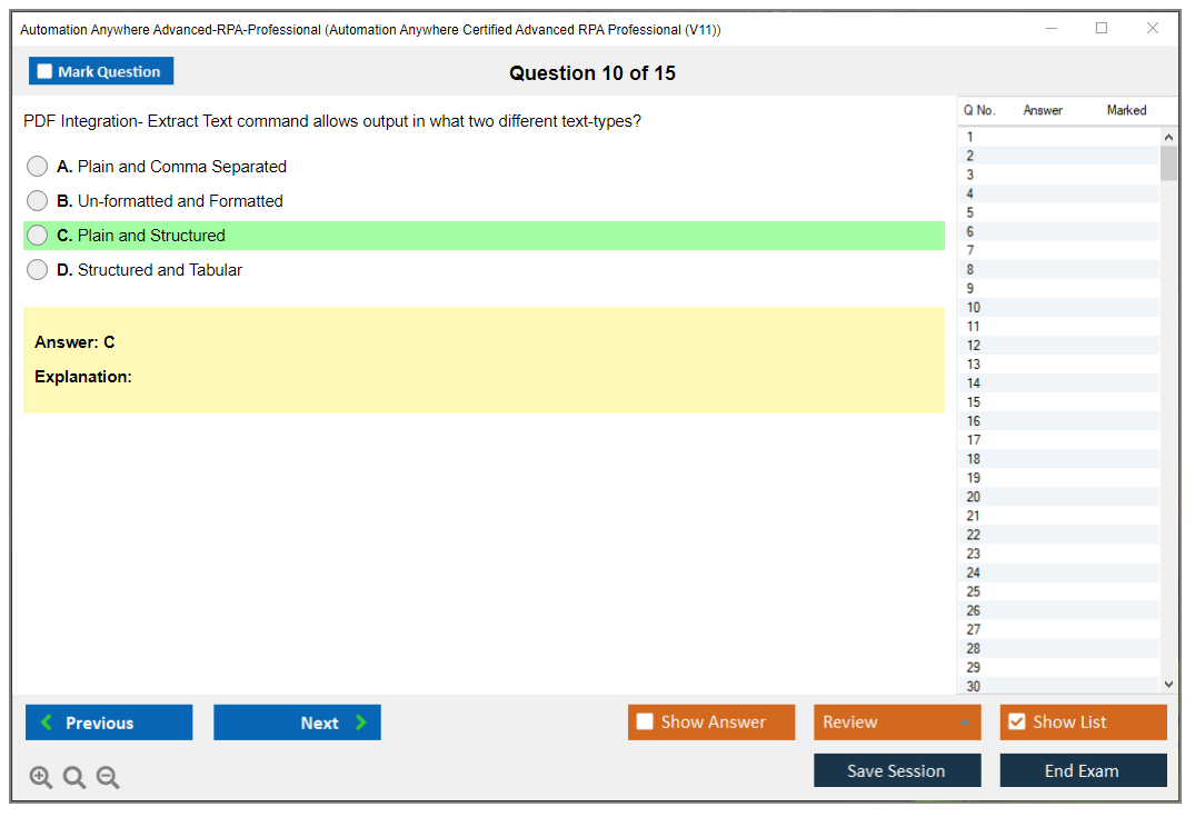 What is the Question Format of Automation Anywhere Advanced-RPA-Professional Exam?