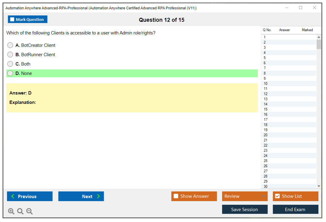 The Automation Anywhere Advanced-RPA-Professional exam is a certification test that assesses an individual's expertise in automating business processes using Automation Anywhere's RPA platform. It is aimed at professionals who have advanced knowledge and experience with Automation Anywhere tools and want to validate their skills.
