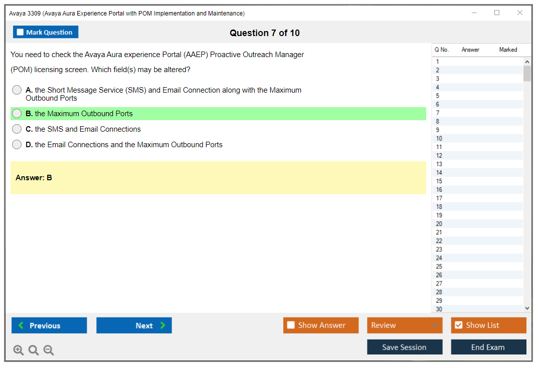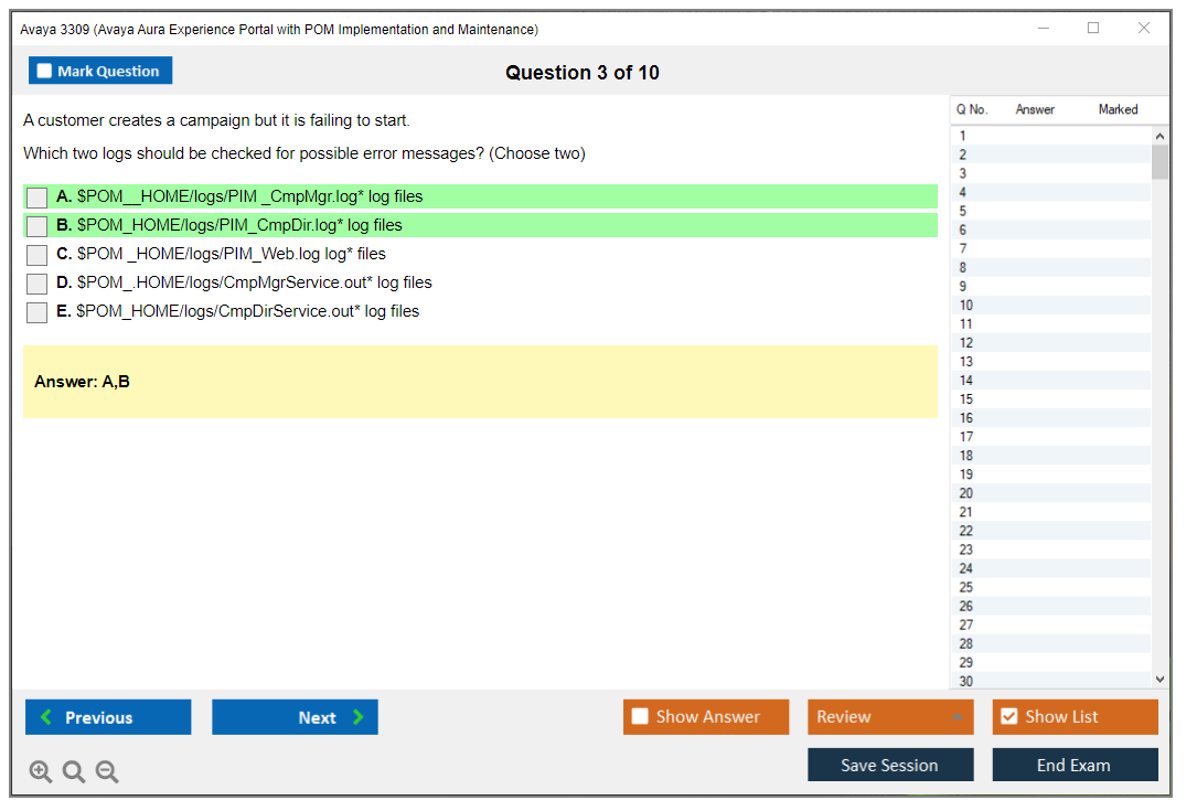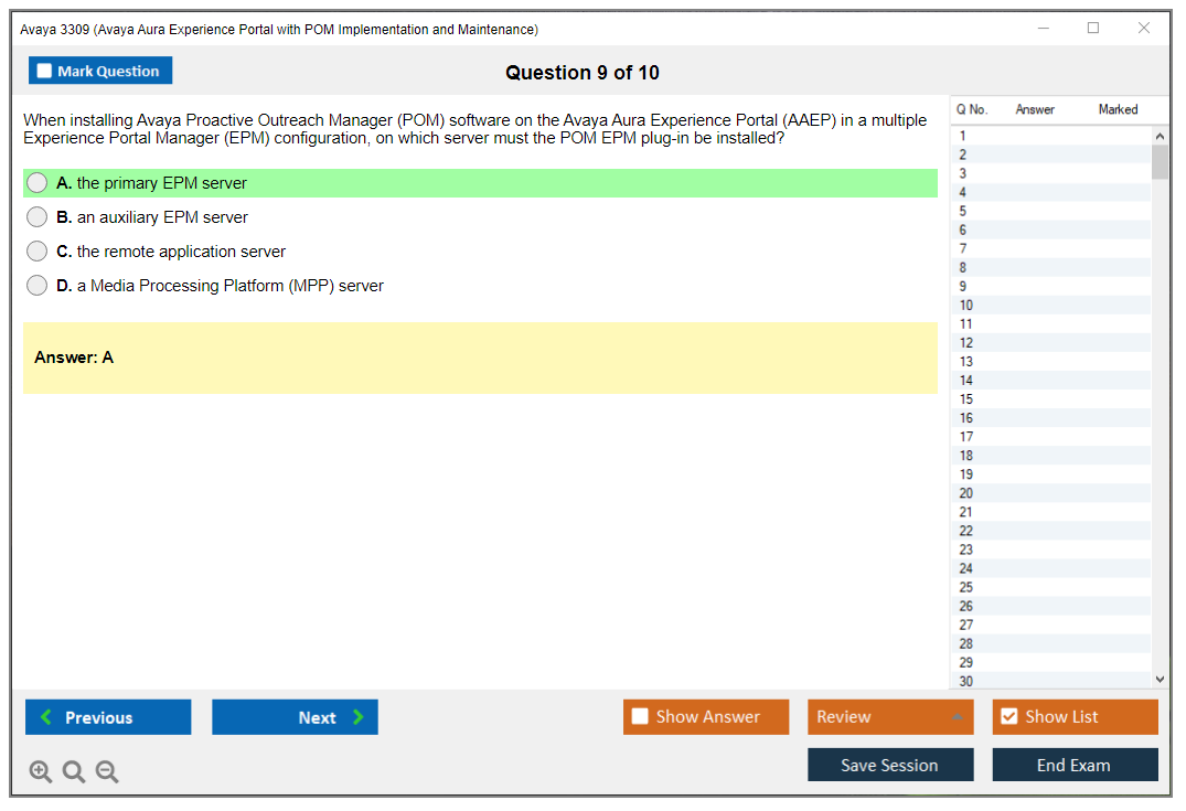 The Avaya 3309 (Avaya Aura Experience Portal with POM Implementation and Maintenance) Exam is designed to validate the skills and knowledge of professionals in implementing and maintaining the Avaya Aura Experience Portal with Proactive Outreach Manager (POM).