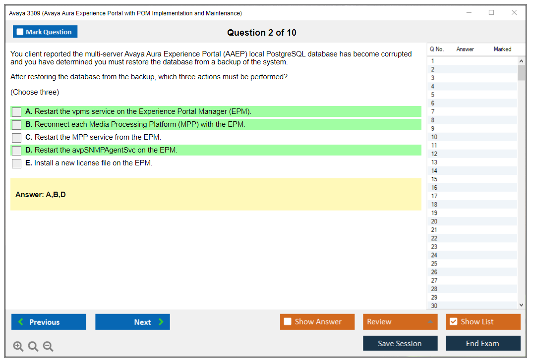 3309 (Avaya Aura Experience Portal with POM Implementation and Maintenance) PDF + Test Engine