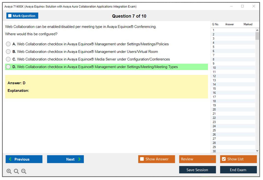 The Avaya 71400X exam, also known as the Avaya Equinox Solution with Avaya Aura Collaboration Applications Integration Exam, is designed to test a candidate's knowledge and skills in integrating Avaya Equinox solutions with Avaya Aura Collaboration applications.