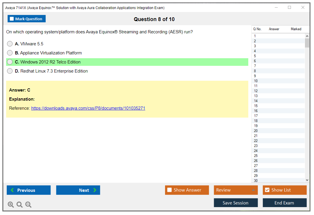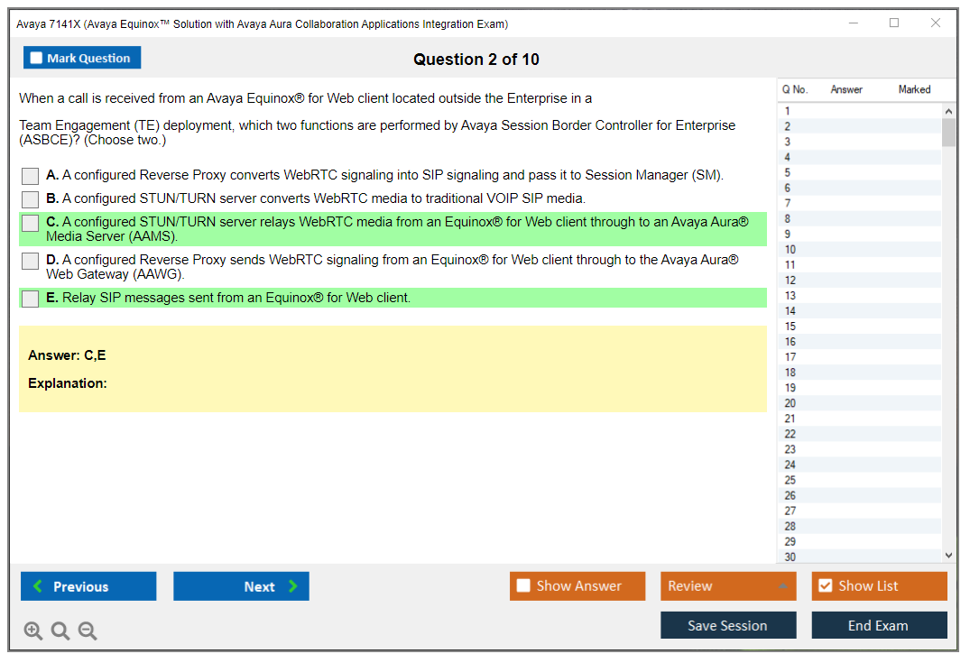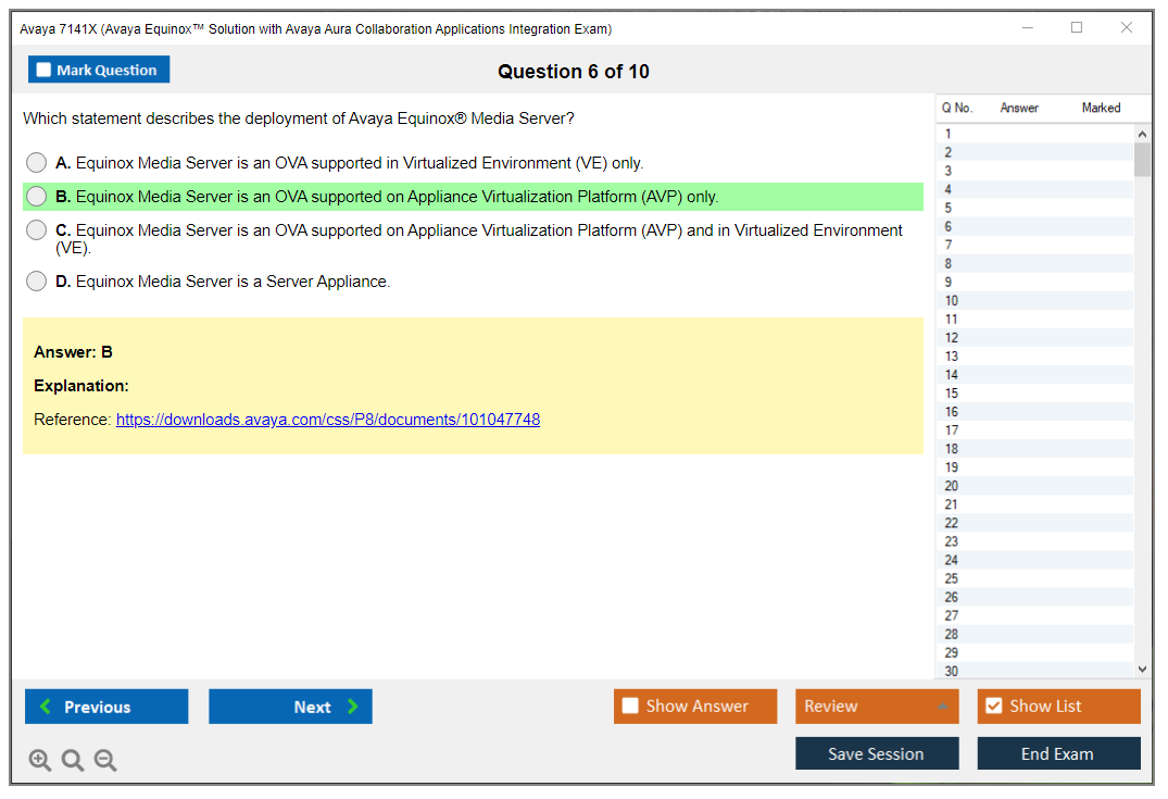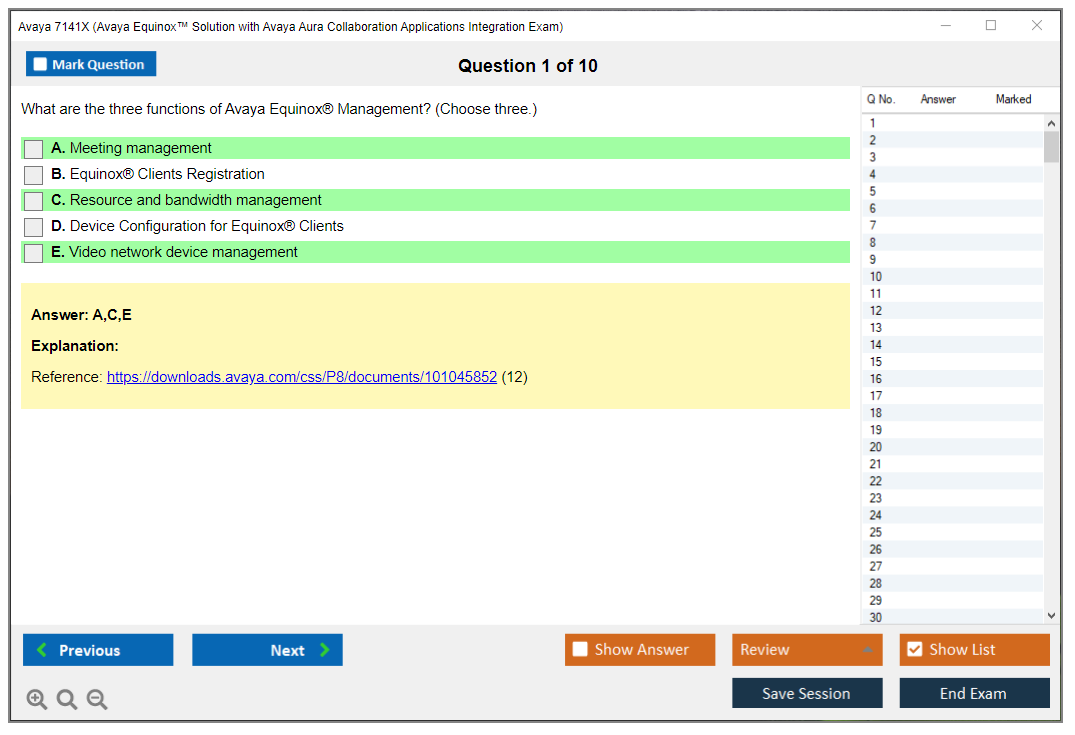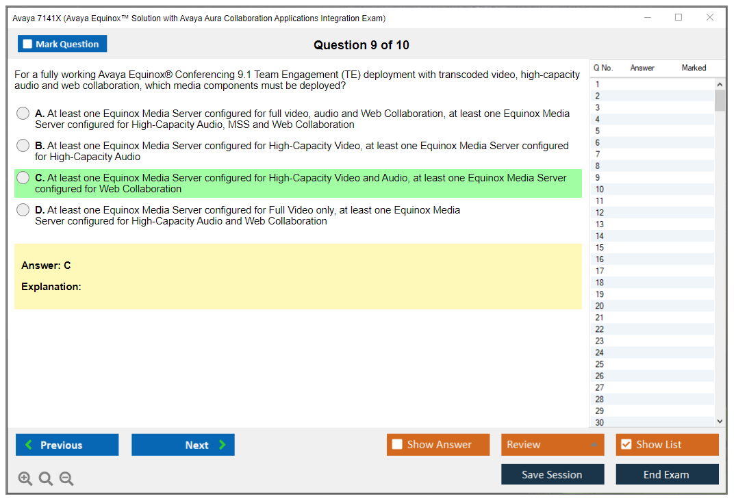 The Avaya 7141X (Avaya Equinox™ Solution with Avaya Aura Collaboration Applications Integration Exam) is designed to test your knowledge and skills in integrating Avaya Equinox™ with Avaya Aura Collaboration Applications. It assesses your ability to implement, configure, and troubleshoot these solutions.
