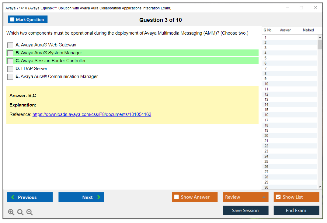 The question format of the Avaya 7141X Exam includes multiple-choice and multiple-response questions.