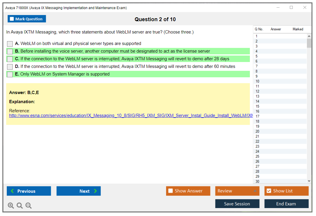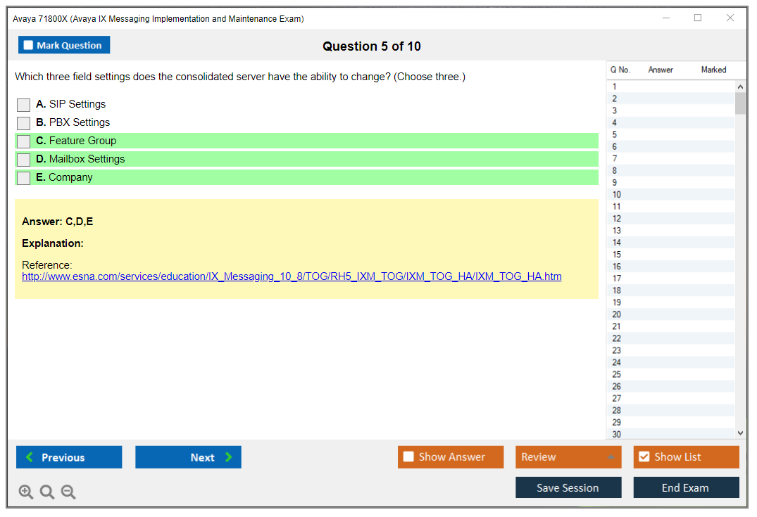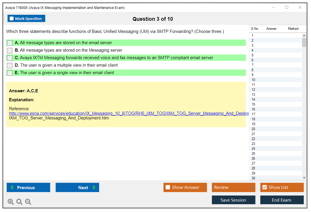 Note: Avaya 71800X (Avaya IX Messaging Implementation and Maintenance Exam) will not receive any new updates.