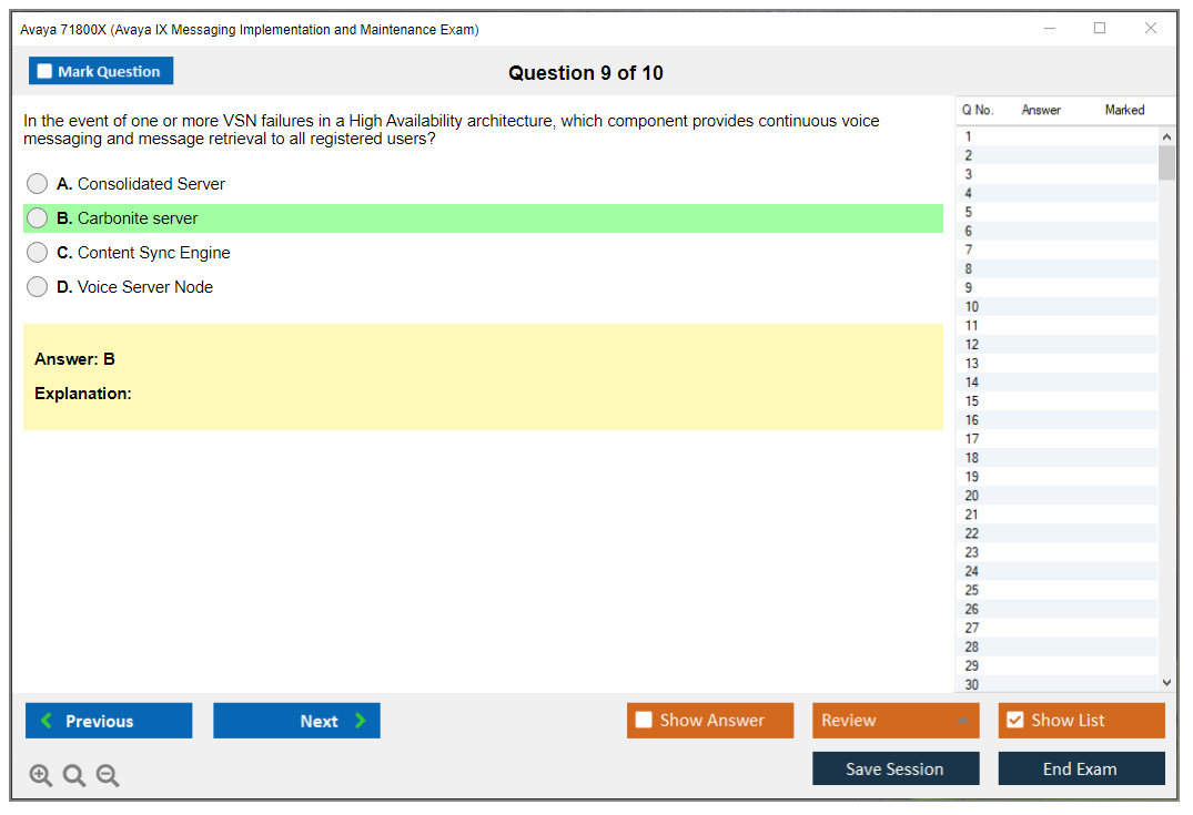 The Avaya 71800X (Avaya IX Messaging Implementation and Maintenance Exam) is designed to test the knowledge and skills of individuals in implementing and maintaining Avaya IX Messaging solutions.