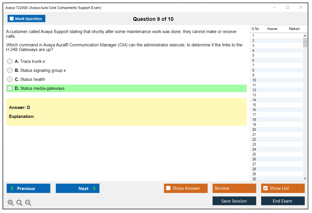 72200X (Avaya Aura Core Components Support Exam) PDF + Test Engine